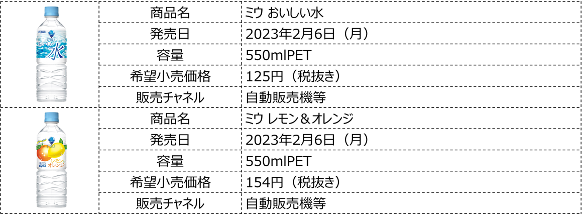 ダイドードリンコ株式会社は、2023年春夏の新商品として、「ミウ おいしい水」「ミウ レモン&オレンジ」を2月6日(月)より発売いたします。