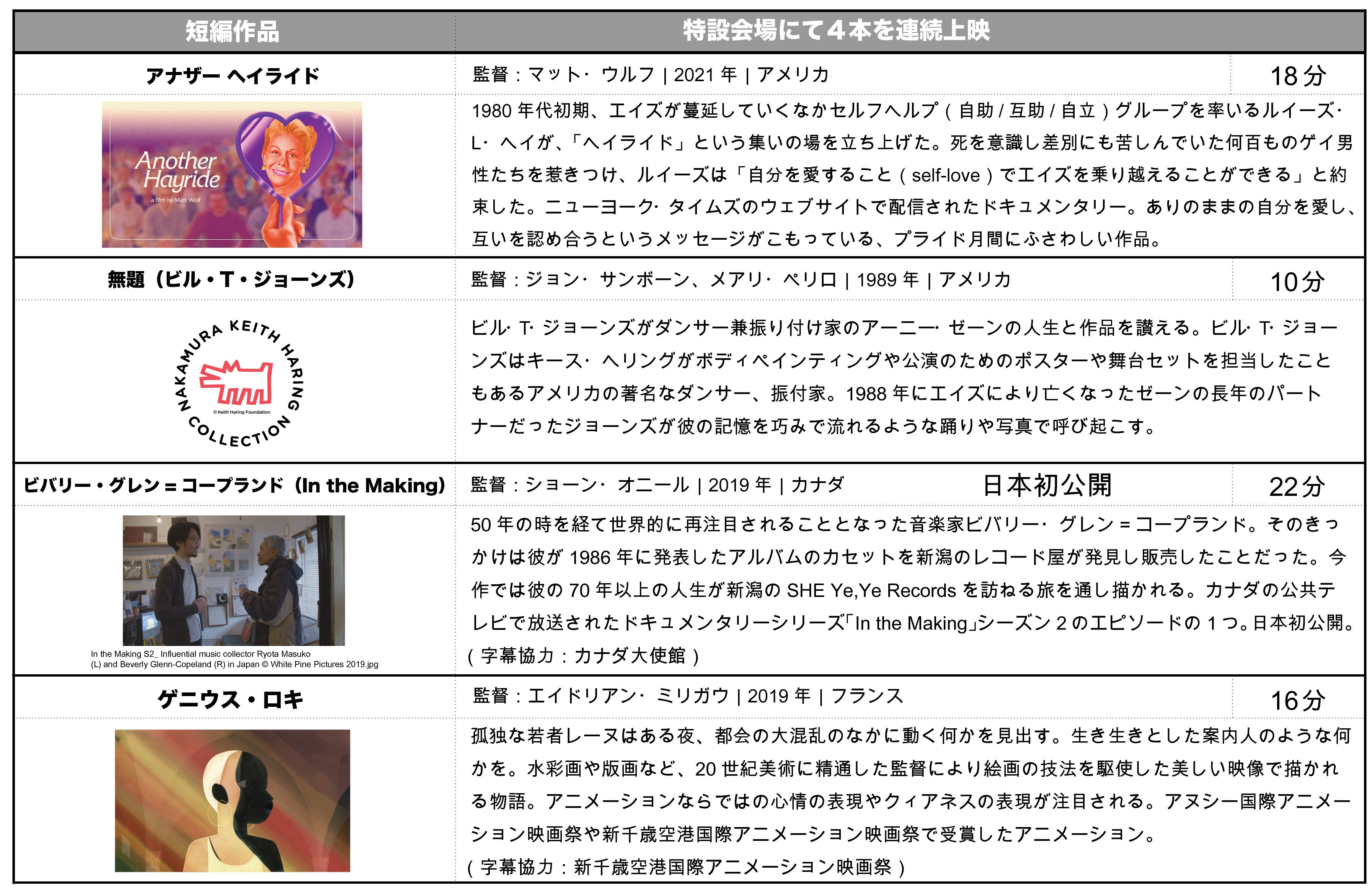 本上映会では少しでも多くの方にクィア・フィルムの多様な表現にふれていただけるよう、ナイトミュージアムの時間に上映される長編作品を含む、6本の映画すべてをご覧いただける2デイパスをワンコイン(500円)で販売します。特に、メイン会場である特設会場では、アニメーション、ドキュメンタリーなど4本の短編作品合計約70分を終日連続上映。好きな時間から鑑賞することができますので、クィア・フィルムやプライド月間に興味があるけれど、足を運べていなかったという方でも、旅の予定に合わせて気軽にお立ち寄りいただけます。