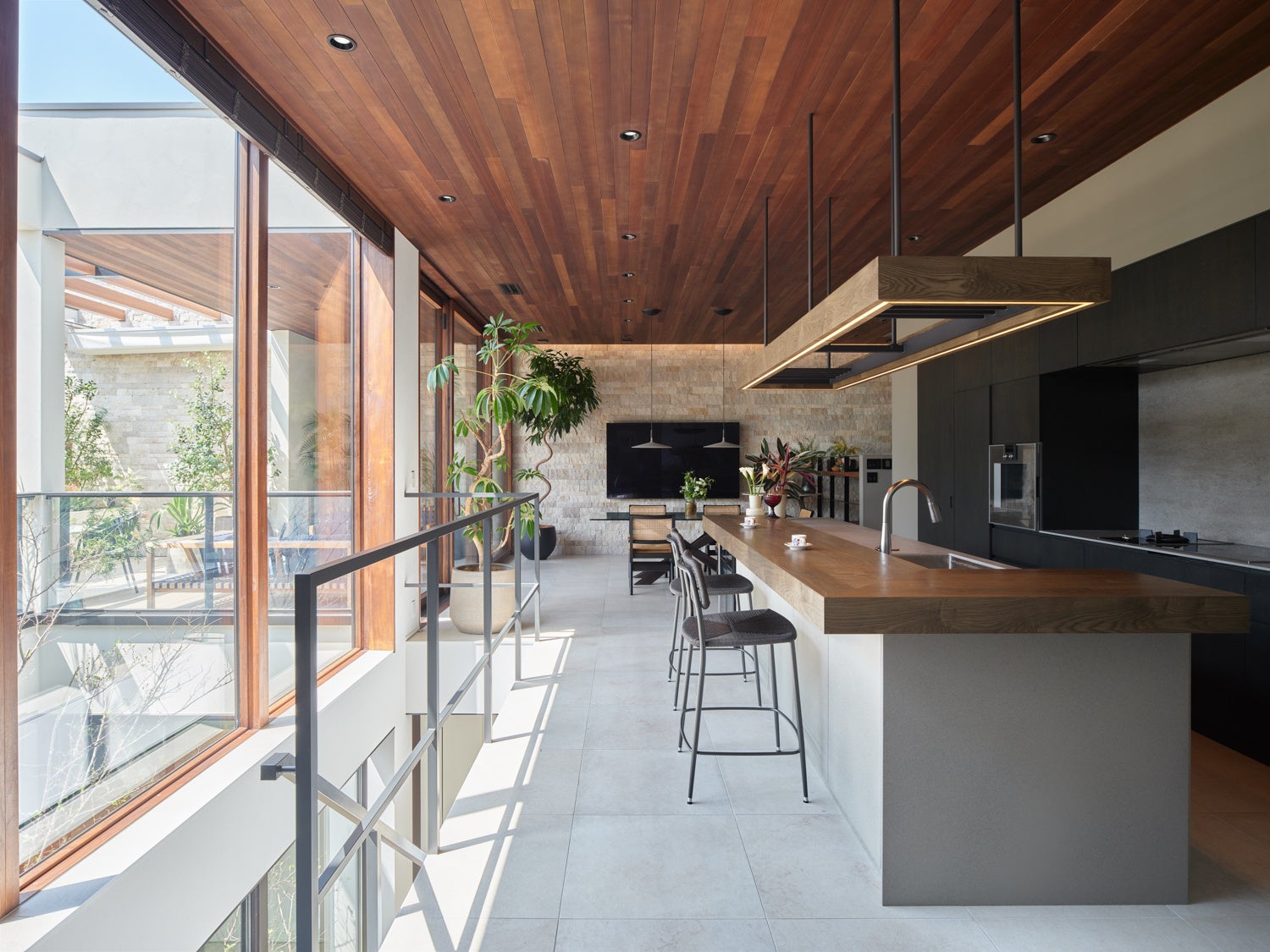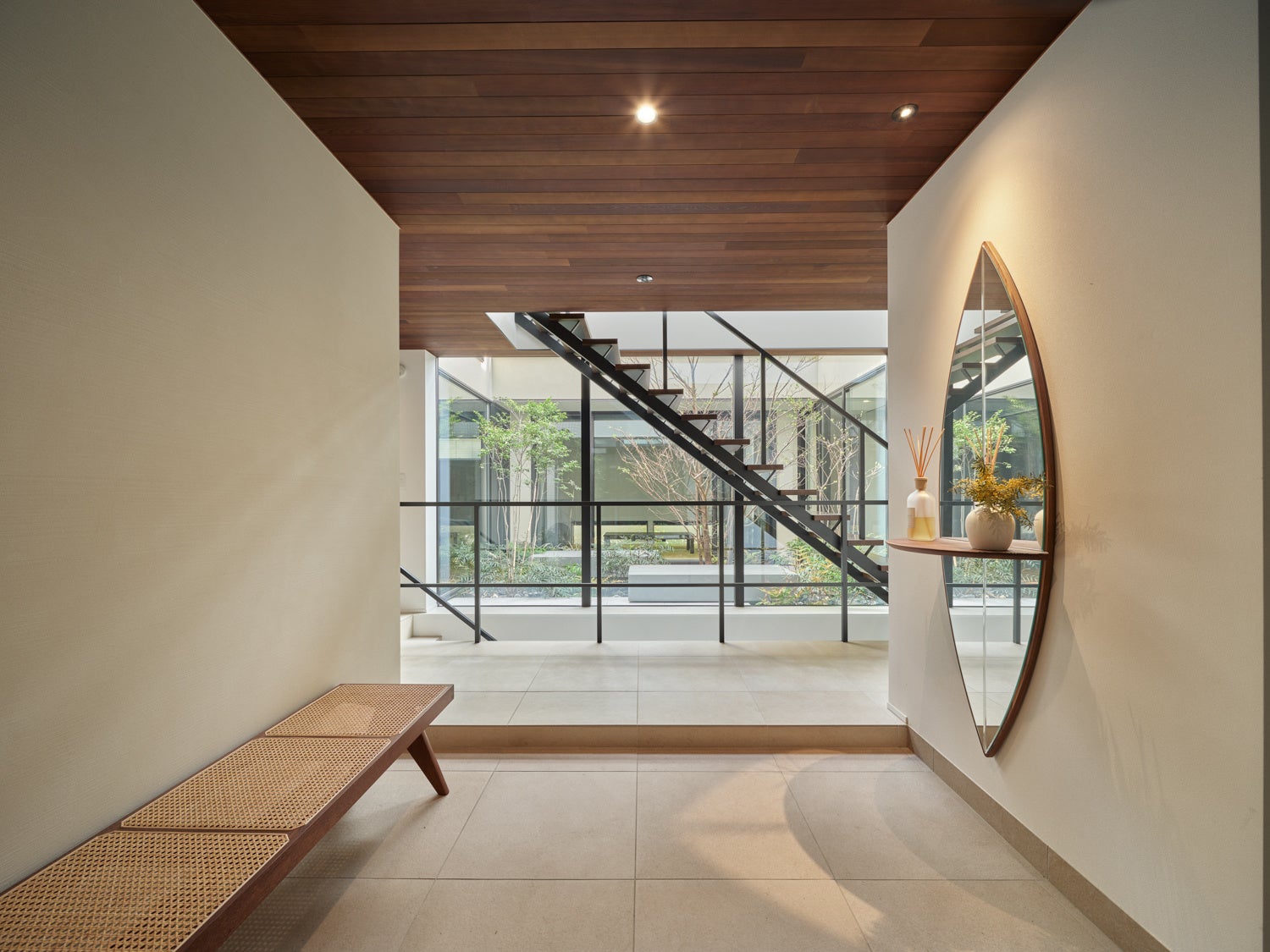 建物内に豊かな屋外空間を擁する、回廊型の邸宅。