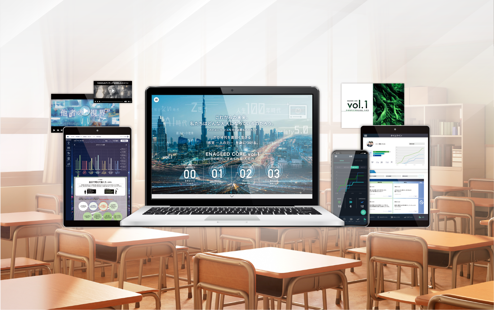 「ENAGEED」では、デジタル教材を中心に動画やワークシートなど多彩なコンテンツを通して「自分で考え、動く力」を育成する体系的な学びを提供することで、生徒が自身の可能性を理解し、自信を持って行動できるようになる成長を支援します。