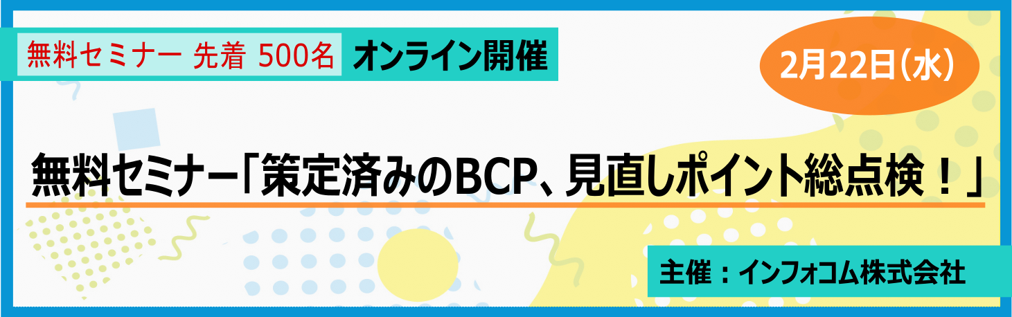【2月22日法人向け無料オンラインセミナー】「策定済みのBCP、見直しポイント総点検!」