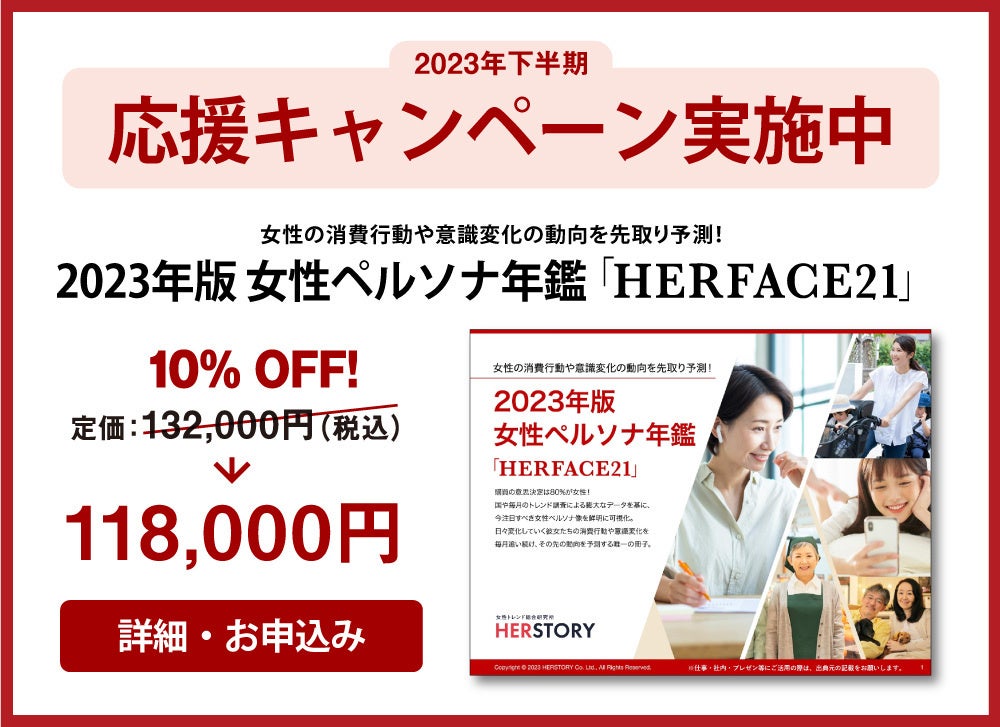 2023年のビジネスを動かすヒントが満載の1冊、最新の女性消費者像を徹底解説2023年版女性ペルソナ年鑑『HERFACE21』の下半期応援キャンペーンを実施中