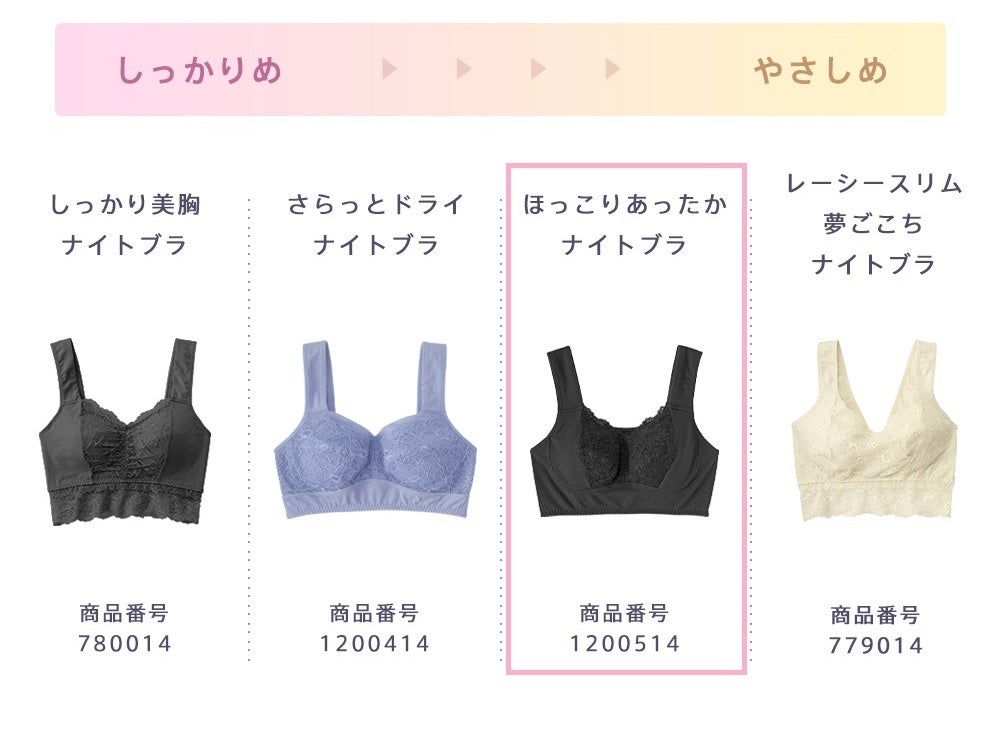 新発売の「ほっこりあたたかナイトブラ」はやさしくあたたかい着け心地を実現しました。