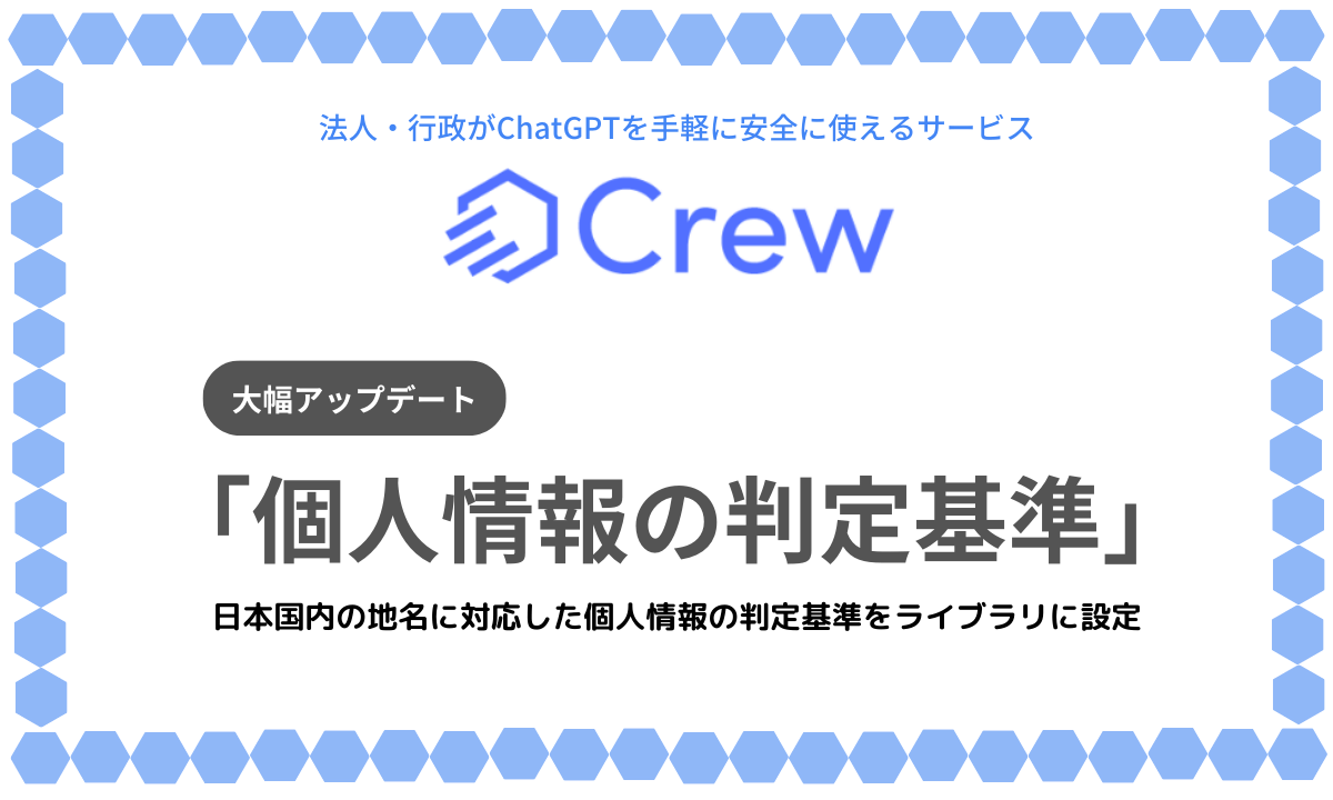 ChatGPTをビジネス利用で安全に活用する業務効率化ツール「Crew」:個人情報の判定基準を大幅アップデート