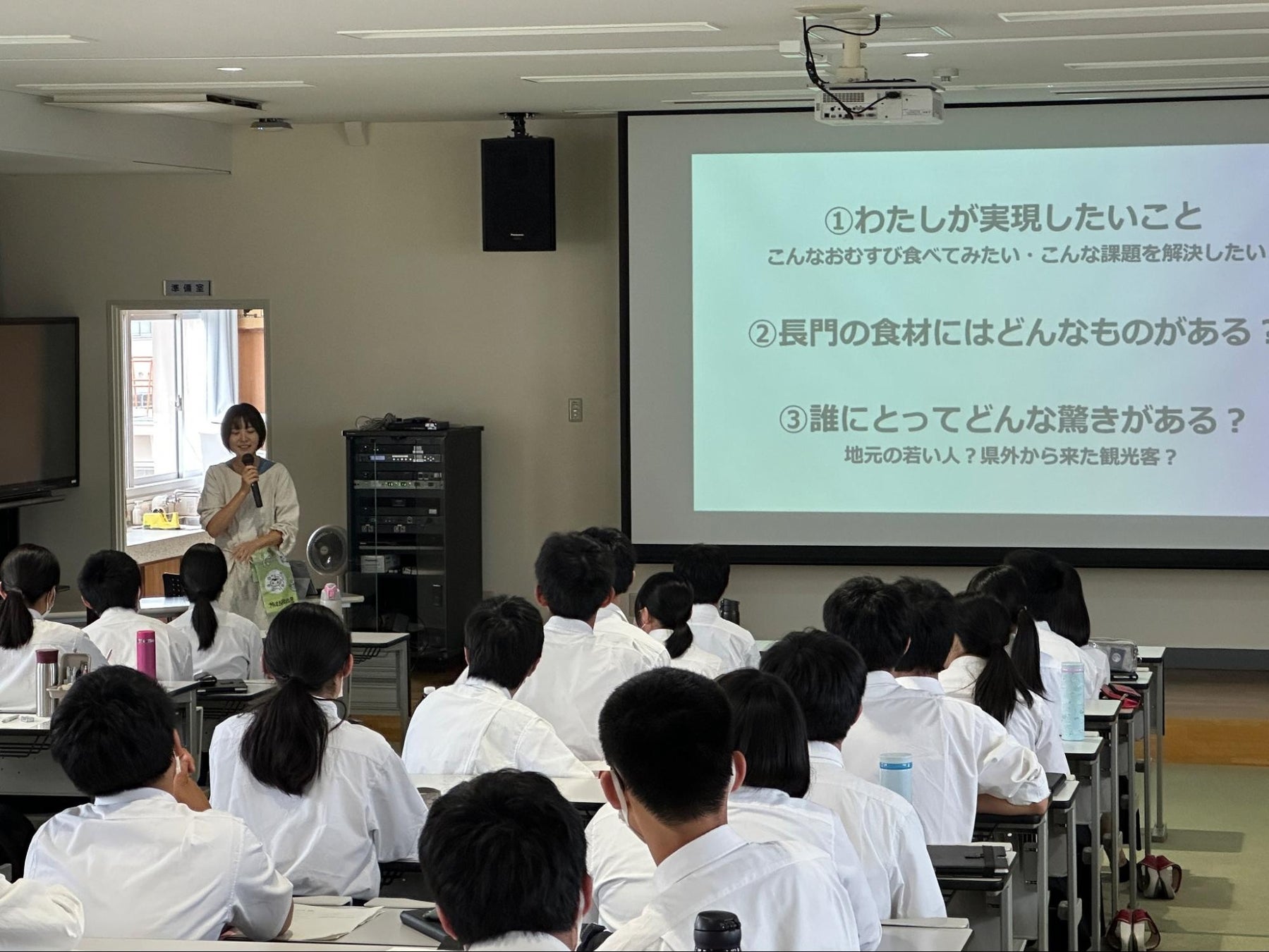 地域の小中学生との連携した探求学習を実施。「総合的な探究の時間」の中で、専門家のレクチャー講座を受けた高校生たちが、小学生が作るおむすびの商品開発や審査会イベントをプロデュース。地元食材の魅力を学び発信しながら、おむすびの商品化に取り組んでいます。