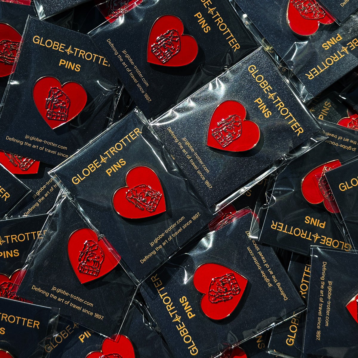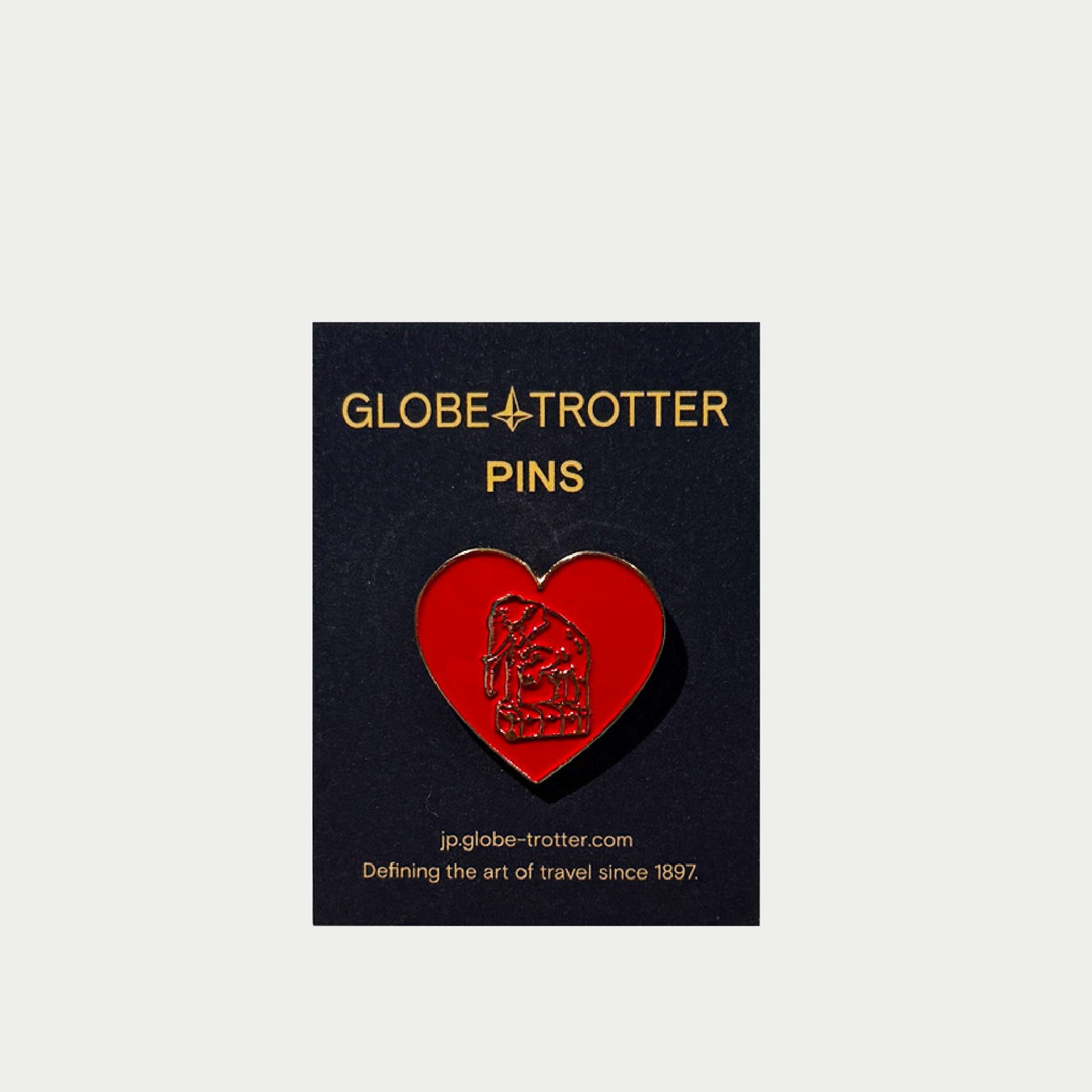 グローブ・トロッターではバレンタインの期間中、グローブ・トロッター各直営店舗にて60,000円(税込)以上お買い上げのお客様に、今回発売されるエレファント・ジョン ハートチャームをモチーフとしたオリジナルピンバッジを先着順にてプレゼントいたします。