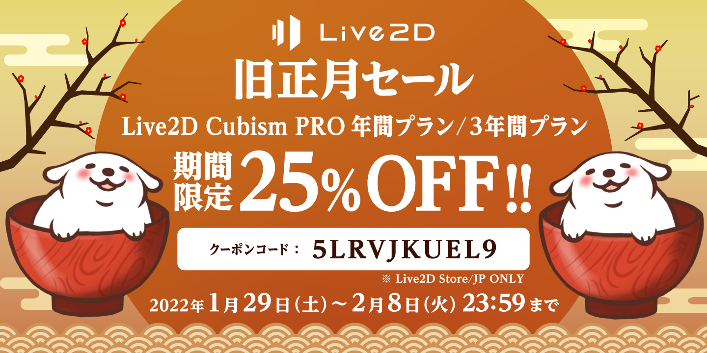 「Live2D」PROライセンスが25%OFF!期間限定 旧正月セール スタート!2022年2月8日(火)まで