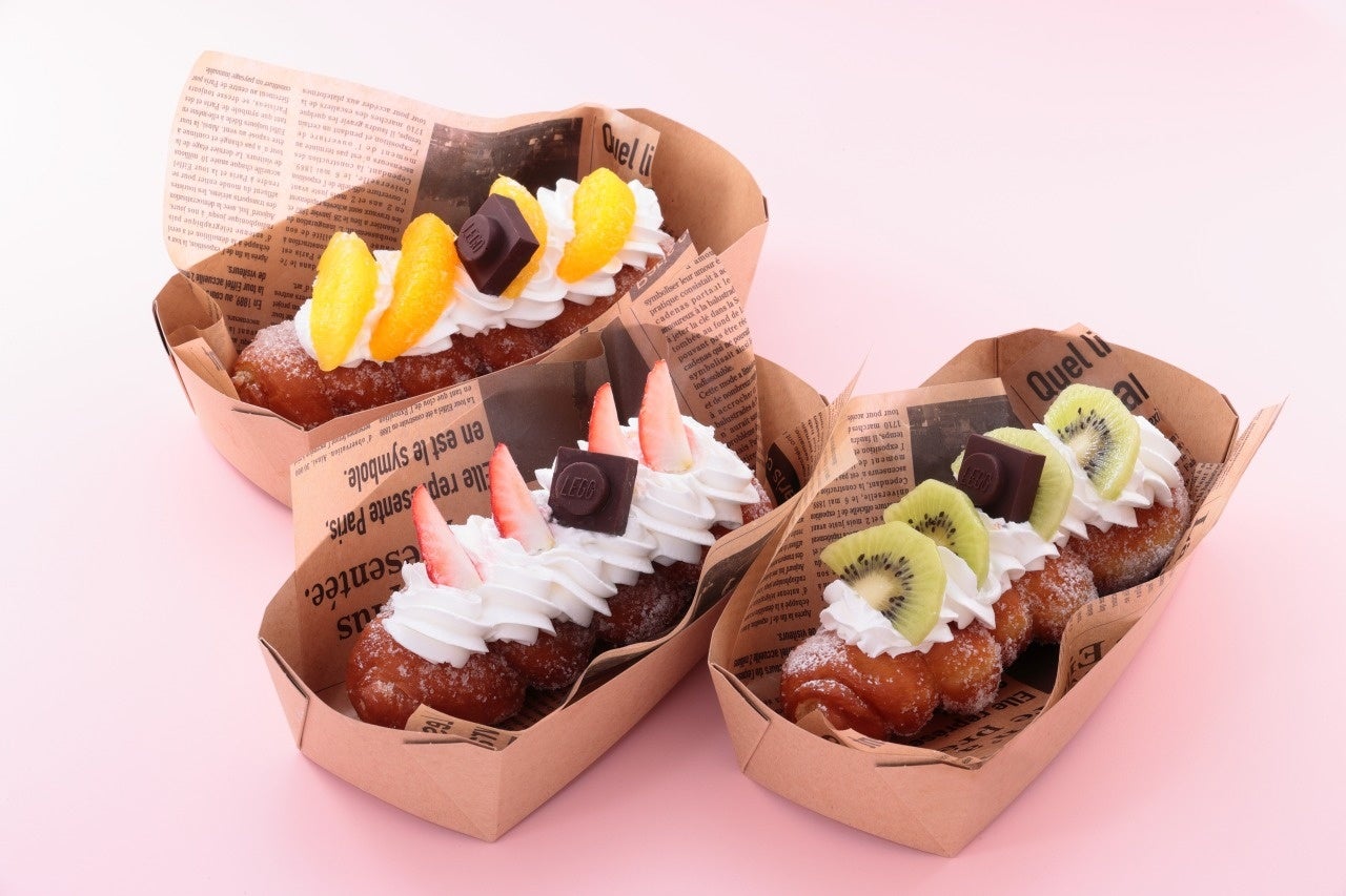 甘いツイストドーナツにいちごやオレンジなどの季節のフルーツをトッピング。見た目も可愛らしく仕上げた一品。