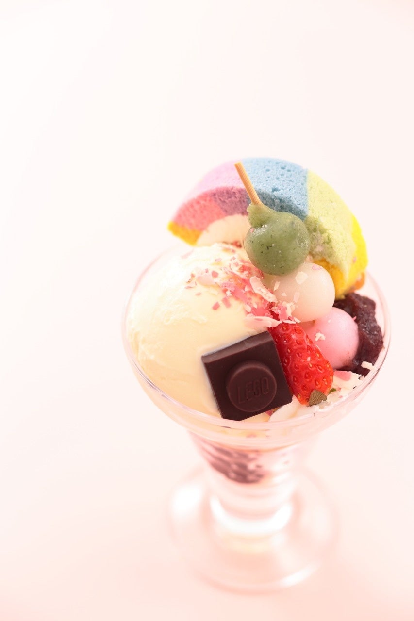 店名「彩(いろどり)」にちなんだあざやかな色彩が特長で、和洋のスイーツを両方楽しめるパフェ。