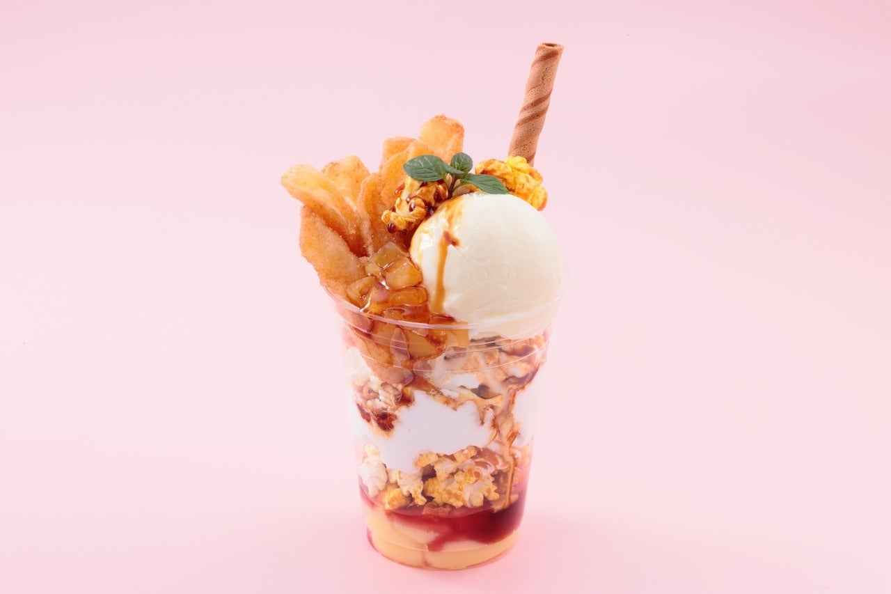 キャラメルポップコーンなどさまざまな味が楽しめる贅沢パフェ。