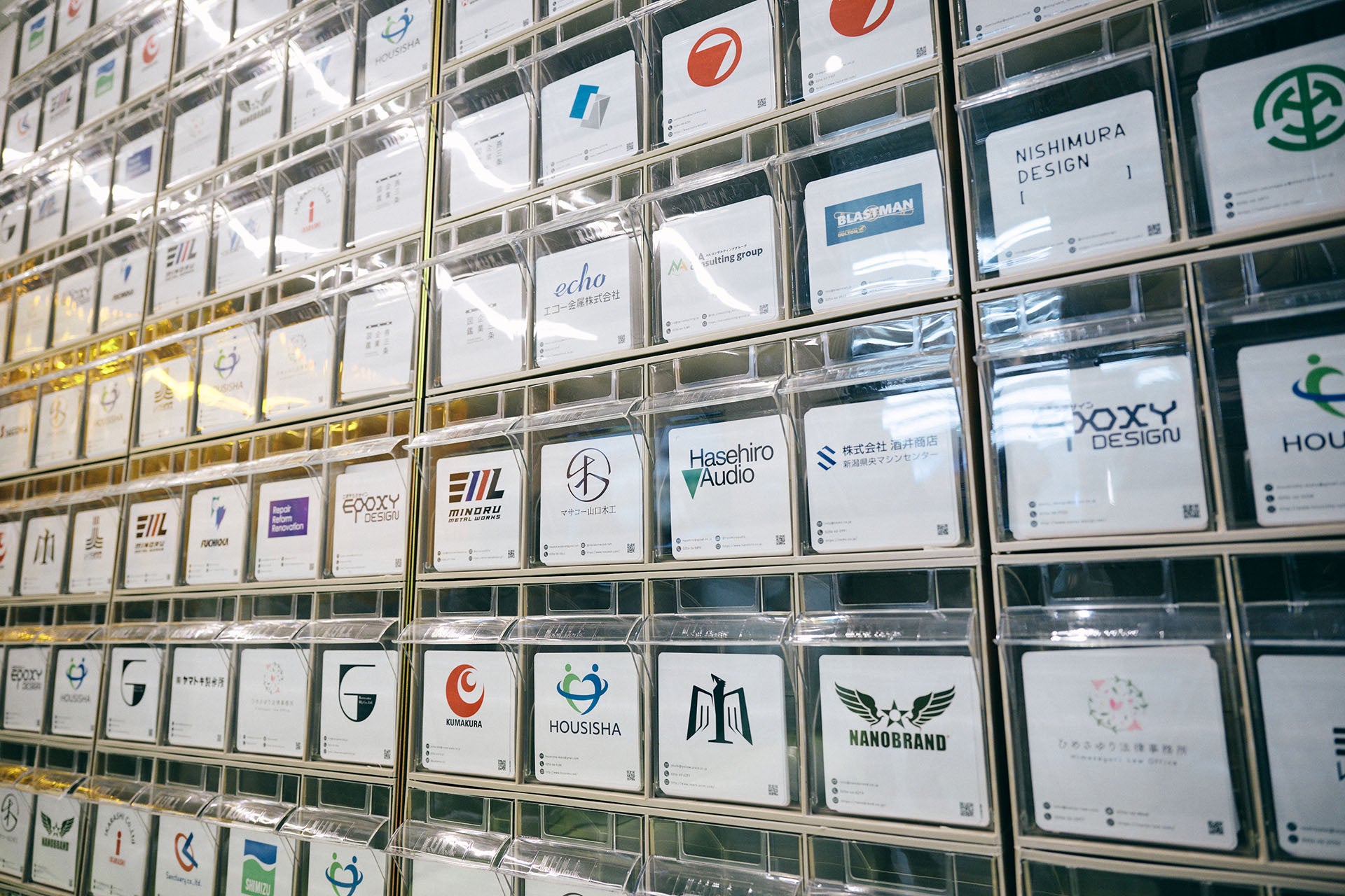 ラックには、100以上の企業の情報が記載されたカードが収められています。無料配布されるそのカードで各企業を訪問したり、持ち帰って次の商談企画に役立てることが可能です。