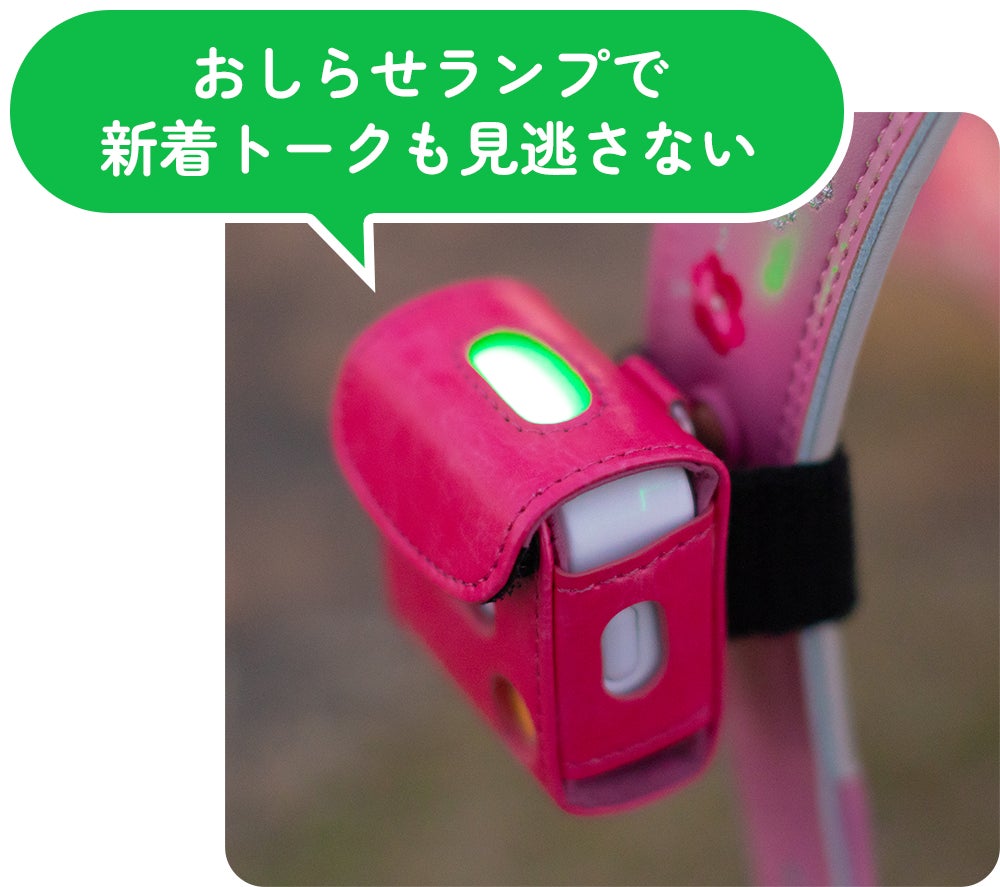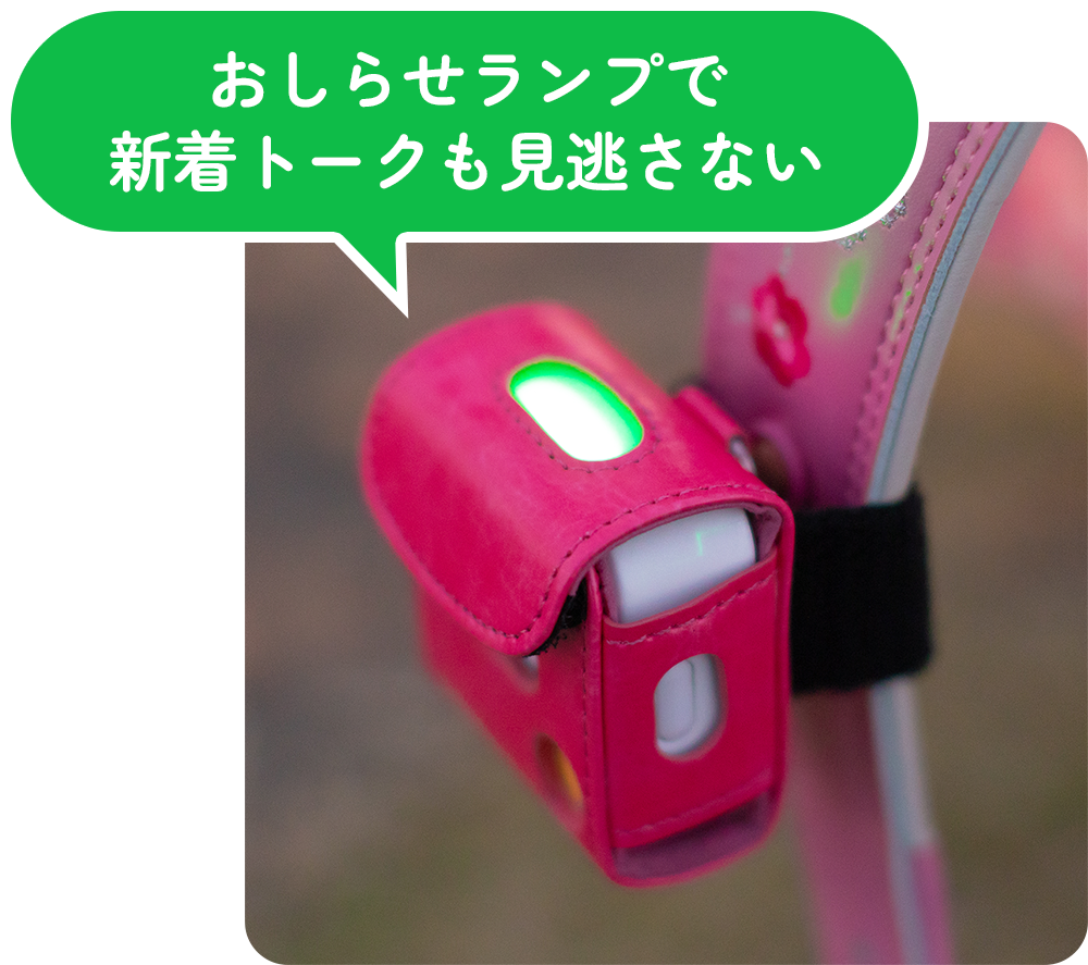 保護者から新着トークが届いた際には、『みもりGPSトーク』に搭載された「お知らせランプ」が緑色に点滅。トークの着信に素早く気付き、確認漏れを防ぐことができます。