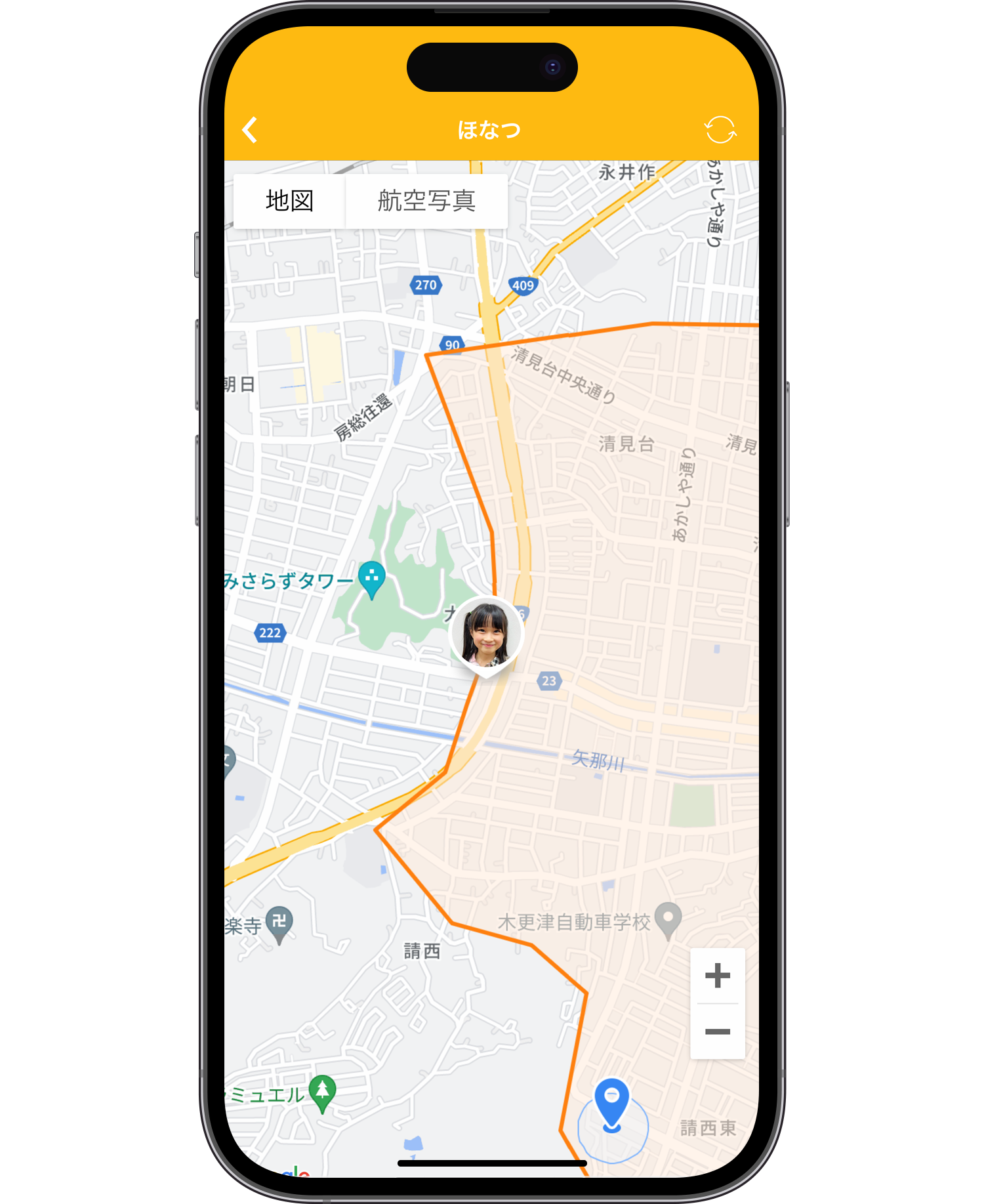 「子どもからの連絡手段が欲しい」そんな声にお応えし、『みもり』では初代モデルから「通知ボタン」を搭載。子どもからトークを送れない場合でも「通知ボタン」を押すことで“今いる場所”を保護者のスマートフォンへお知らせします。