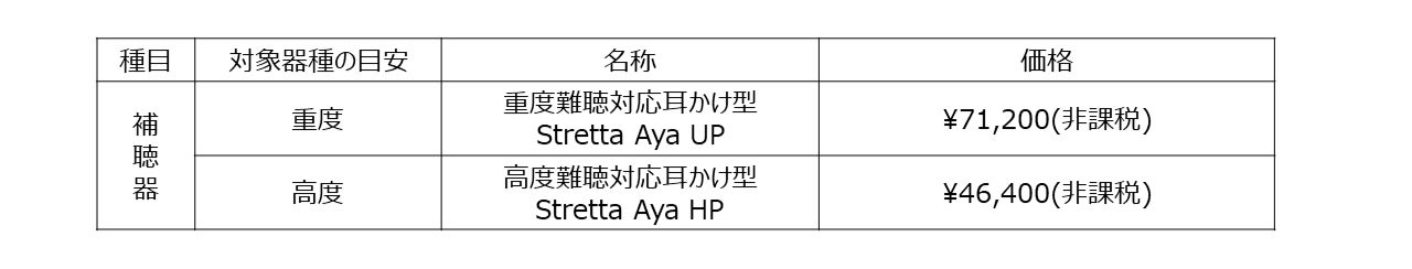 ●Stretta Ayaは障害者総合支援法の補聴器購入基準価格に準じた価格設定になります。