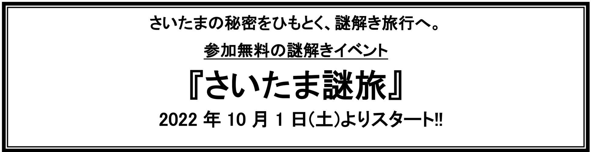 この度、株式会社バッドニュース(東京都渋谷区 代表:千葉和利)は、さいたま市の受託事業として、オンライン・リアルでさいたま市をめぐって謎を解き、観光を楽しむ謎解きイベント「さいたま謎旅」を2022年10月1日(土)より開催いたします。