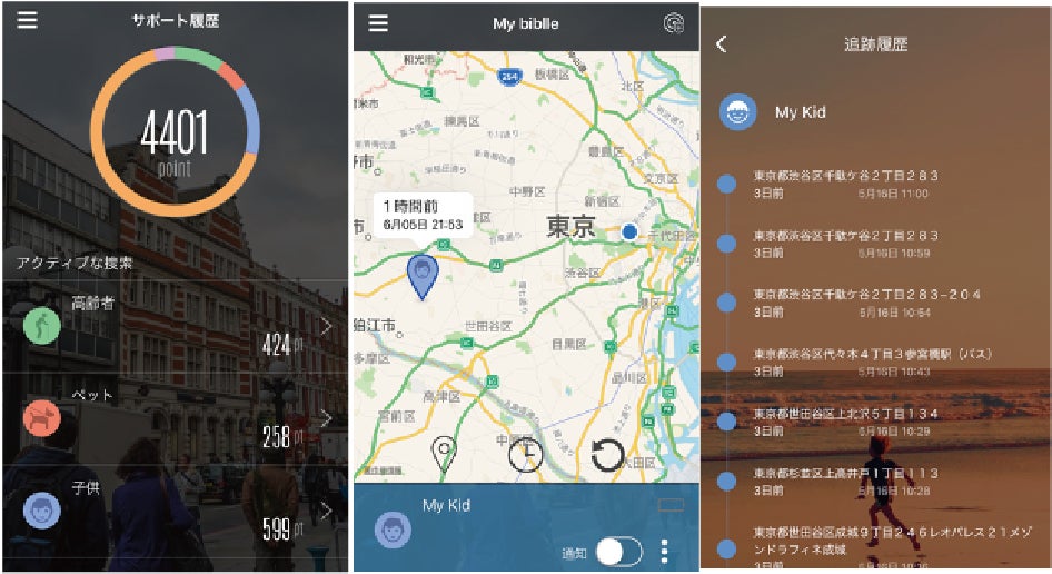 タグの利用者は、スマートホンと離れてしまった場所を自動で検知しておくことに加えて、サポーターや他のユーザーとすれ違った履歴を「地図」や、「追跡履歴」から確認することができます。