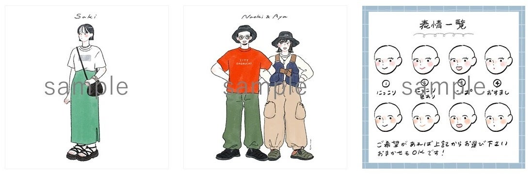 内容:写真を元に全身構図でイラスト作品を制作。作品サイズや表情を選択できる他、有料オプションで人物を追加することが可能。