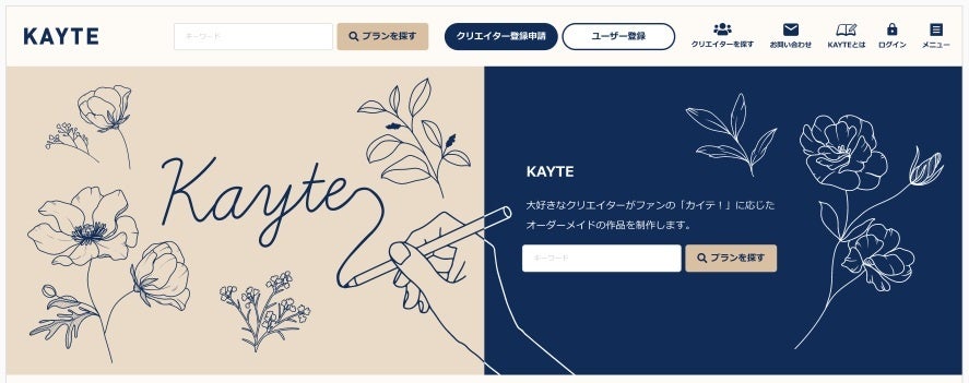 「KAYTE」は、イラストレーター、絵本作家、漫画家等のクリエイターが、作品制作サービスを出品できるWebサイトです。