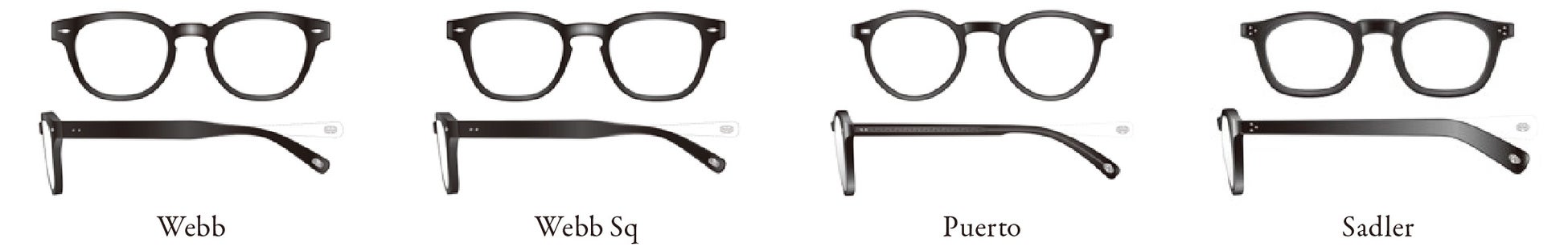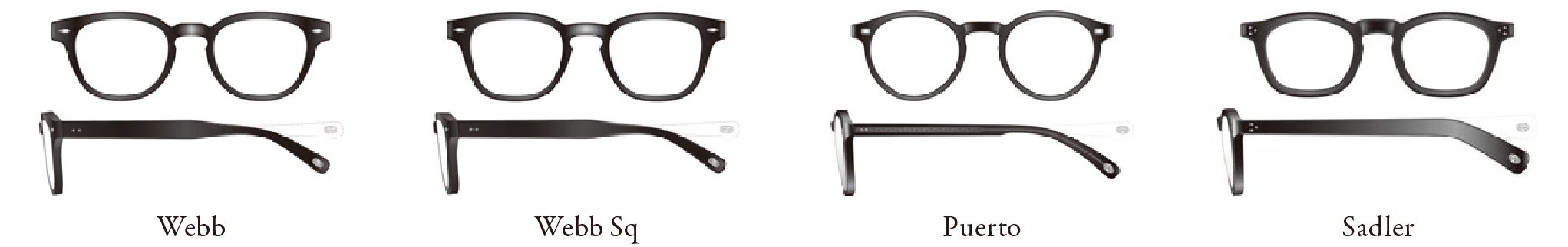 デザイン、サイズ、カラーの組み合わせだけでも約4000種のパターン。ブランドを代表する4モデル(Webb、Webb Sq、Puerto、Sadler)がベースとなり、それぞれサイズを4~5種類から選択することにより、どんなお客様にも必ず似合うバランスを見つけることができます。さらにフレームやリアルレザーを用いた特製ケースにも名入れが可能です。スーツや靴を仕立てる感覚で、お客様のお顔にピッタリはまる既製品にはない世界で1本の眼鏡をご提供いたします。