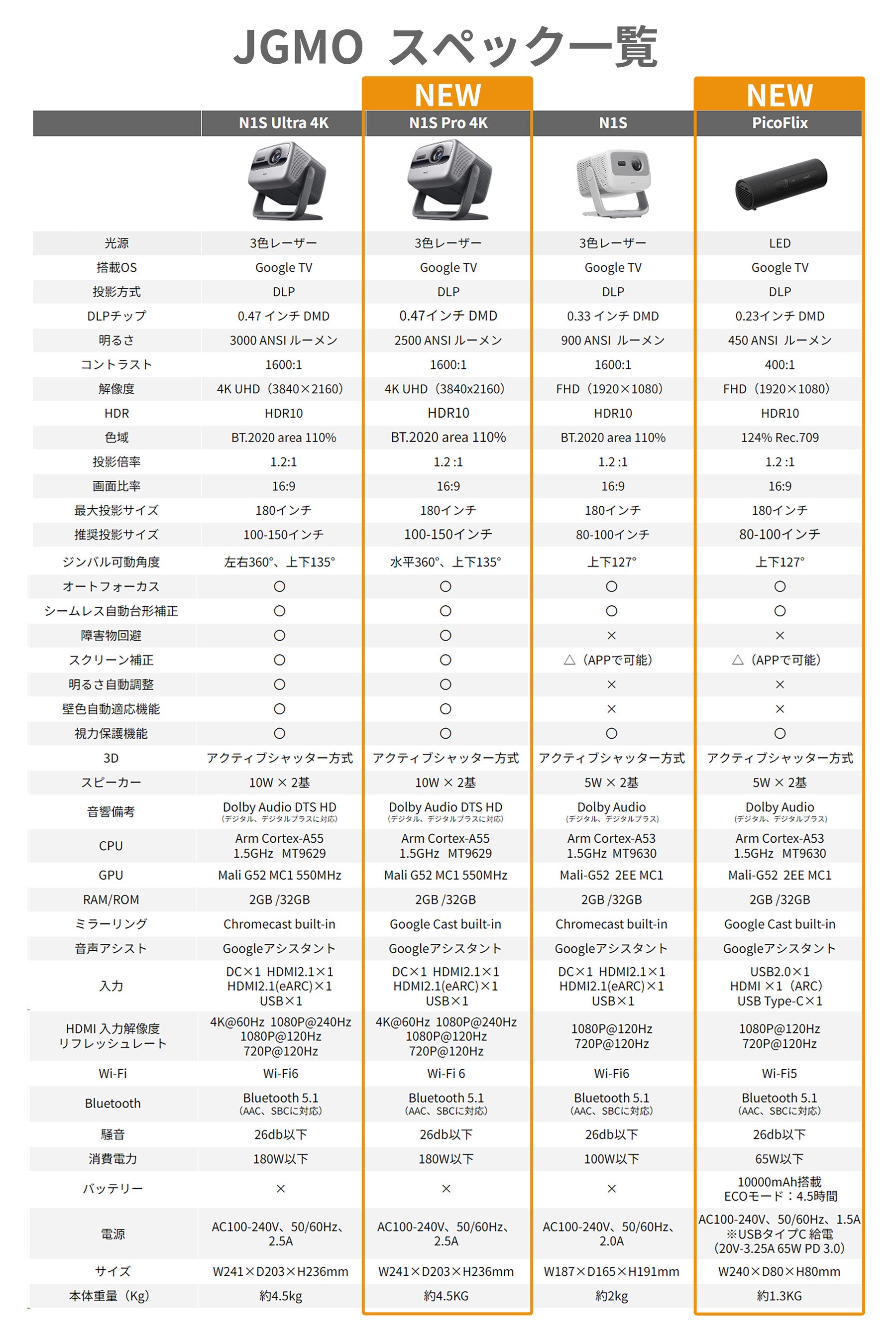 N1S Pro 4K /PicoFlix スペック表