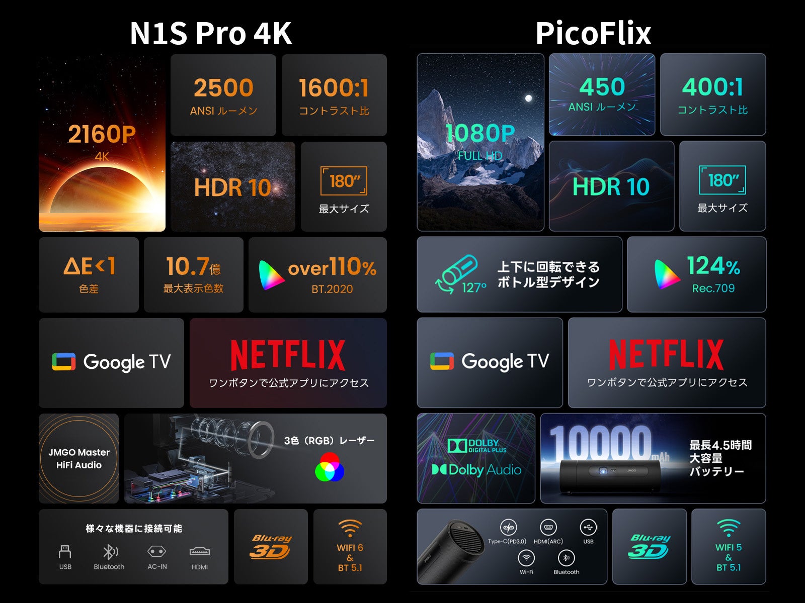 JMGOより『N1S Pro 4K』『PicoFlix』 2機種同時予約開始