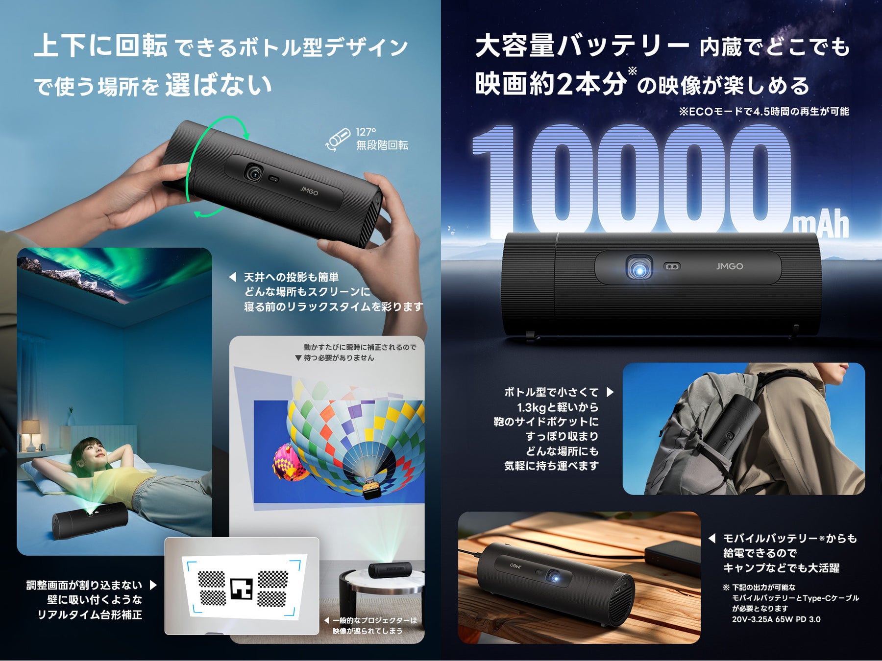 ■回転ボトル型デザインで設置も投影も簡単