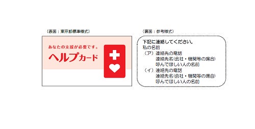 ヘルプカードは、聴覚障害者や内部障害者、知的障害者など、⼀⾒、障害者とはわからない⽅が周囲に⽀援を求める際に有効です。これらのカードや⼿帳などを提⽰された際には、その記載内容に沿って⽀援をお願いします。
