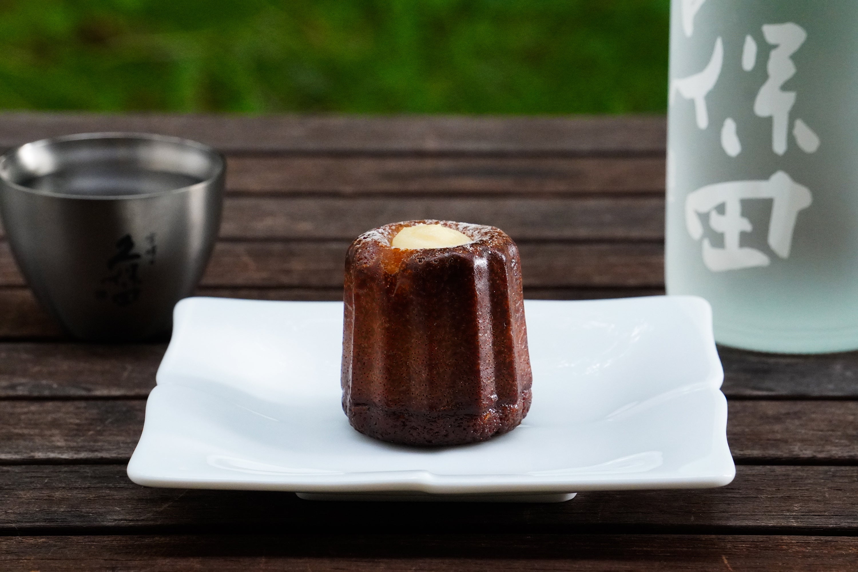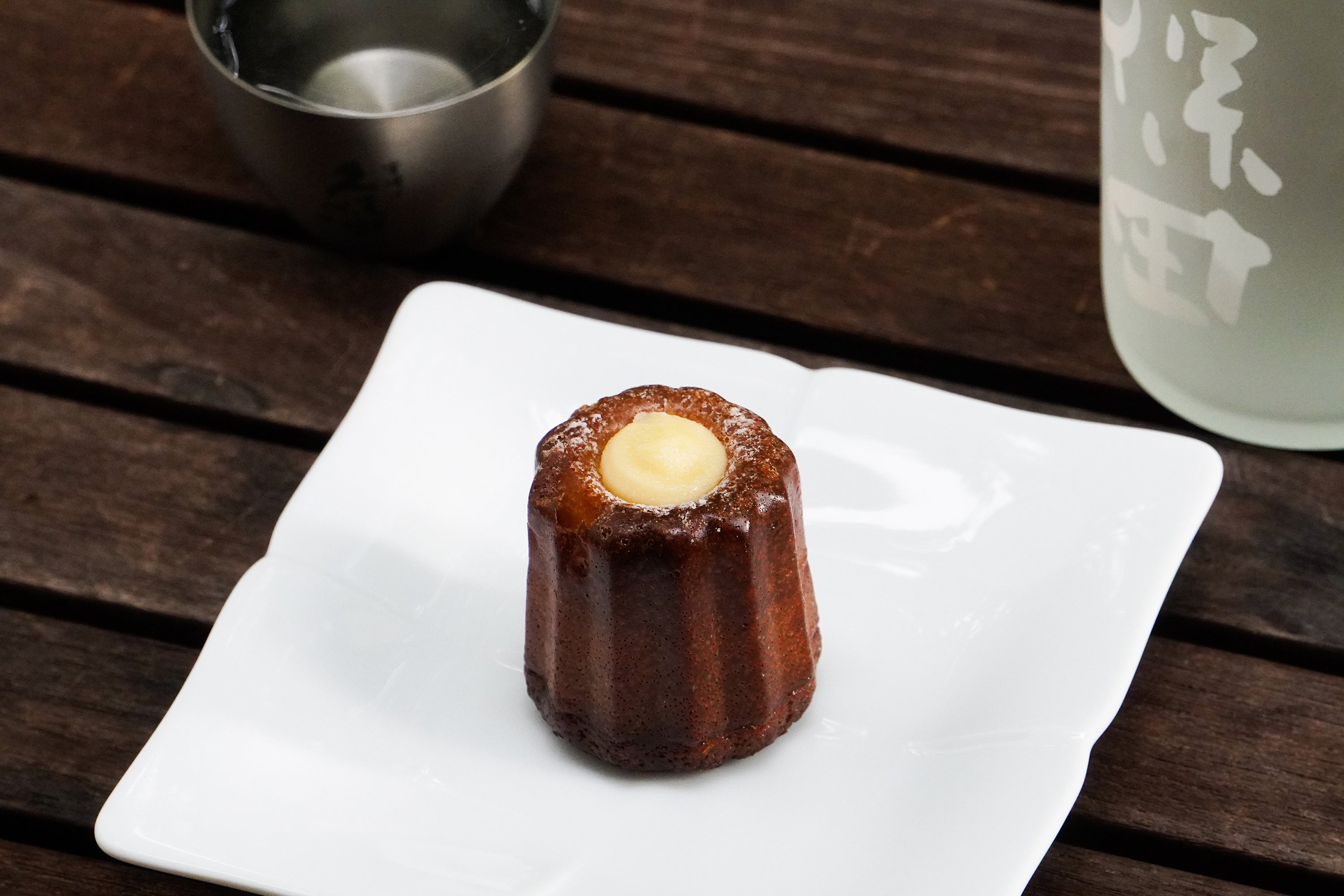 和三盆の上品な甘さと、『爽醸 久保田 雪峰』の米、こうじの甘くほのかな香りが感じられるカヌレです。トップに乗せたバタークリームが、しっとりした生地と口の中でまろやかなハーモニーを奏でます。
