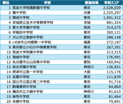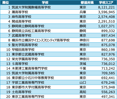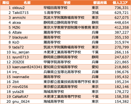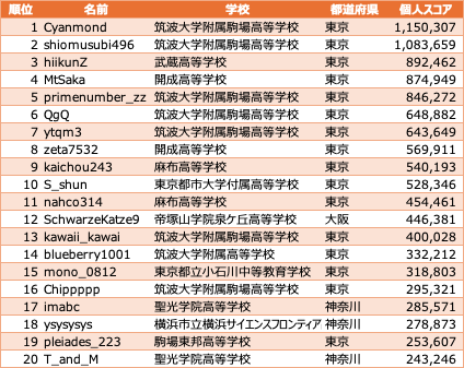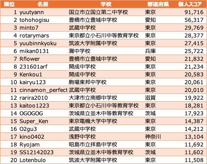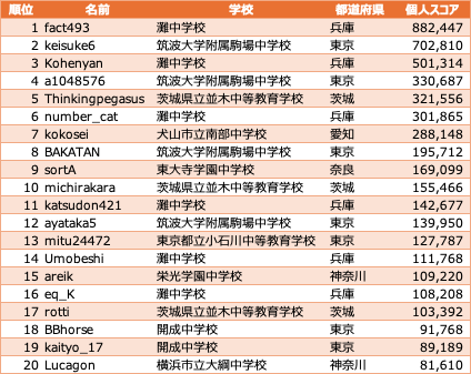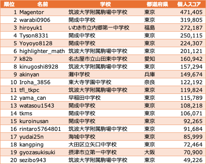 ・学校スコアは、その学校に所属する全参加登録者の個人スコアの合計で算出