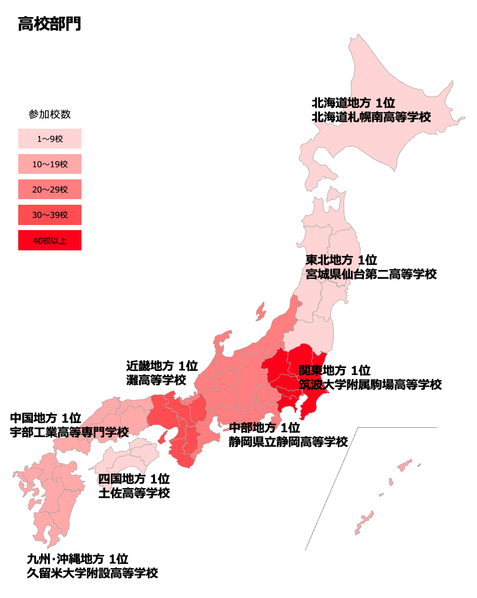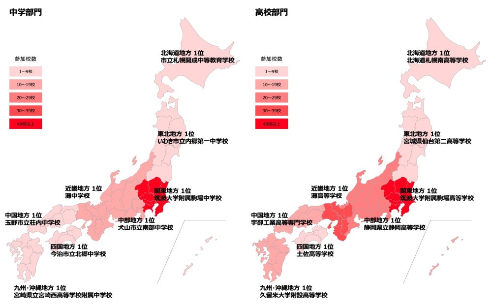 ■AtCoder Junior League エリア別参加学校数と各部門エリア1位の学校