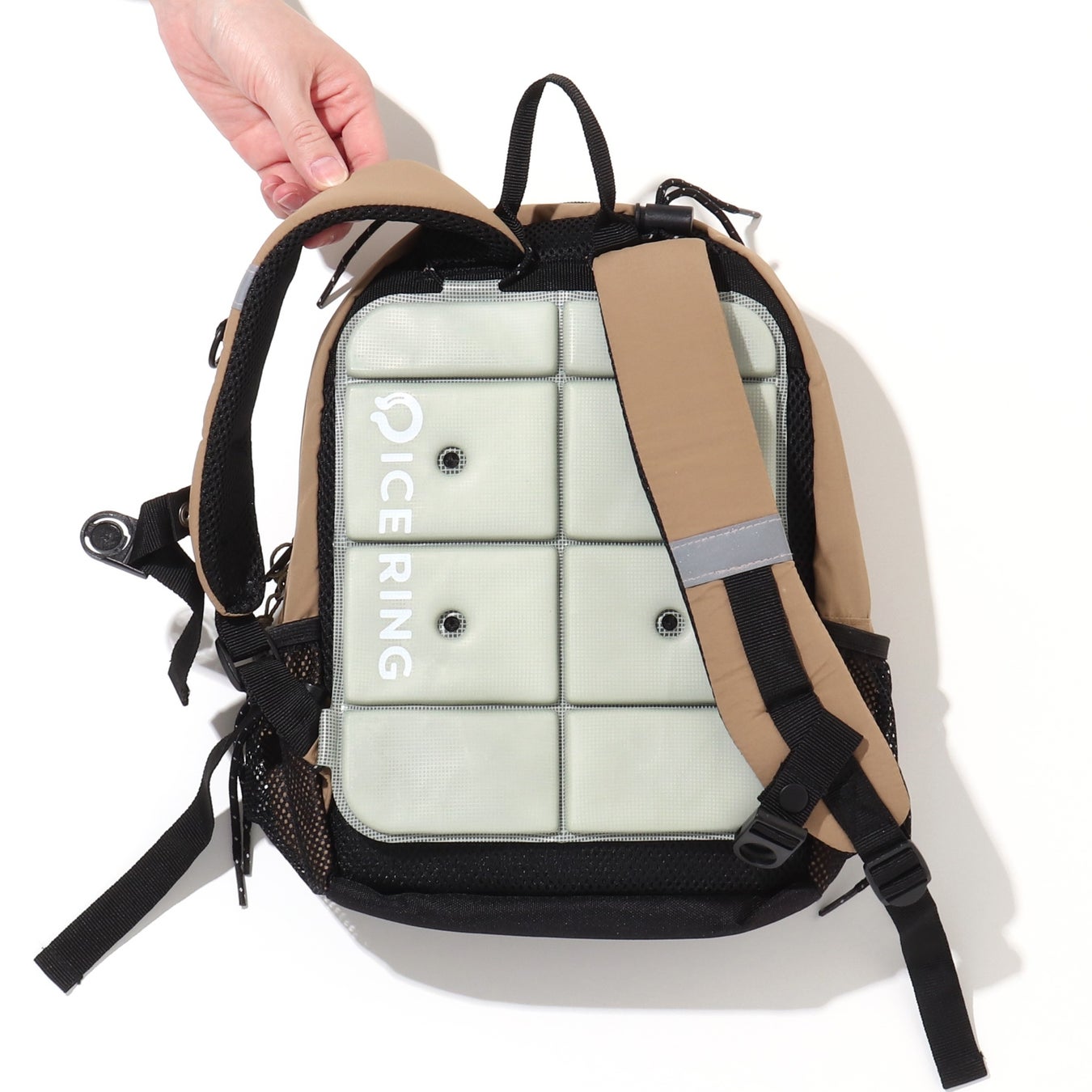 アイスリングと同じ技術で作られた冷却シート。ランドセルやリュックサックにつけられるひんやりグッズ。結露しないので、服もリュックも濡れず快適に背負えるのがポイント。通園通学用や夏のレジャーに最適です