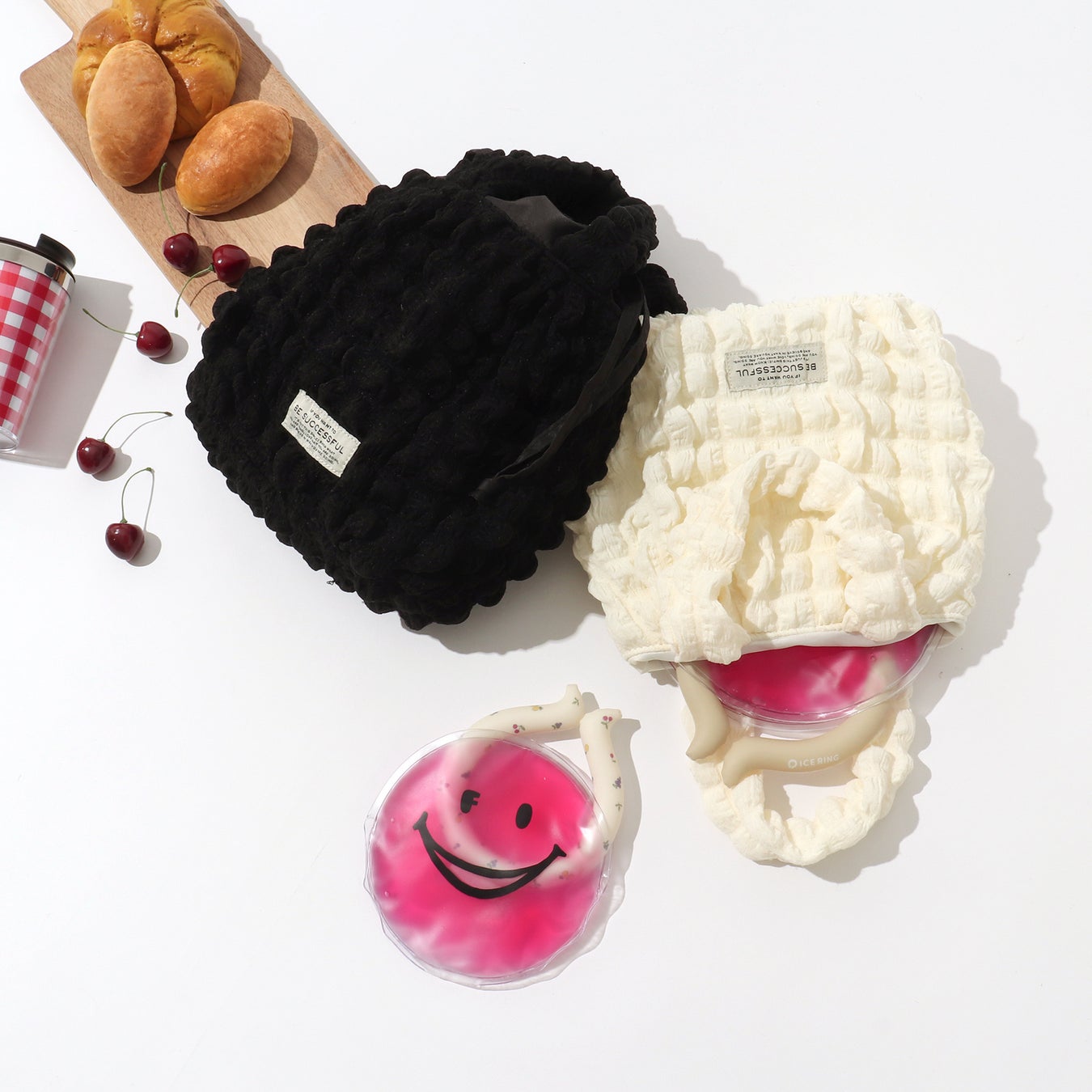トレンドのぽこぽこ感が可愛いハンドバック型で軽くて程よい大きさがデイリーユースにピッタリ。お弁当箱入れなどにも使用できるおしゃれな保冷バックです。
