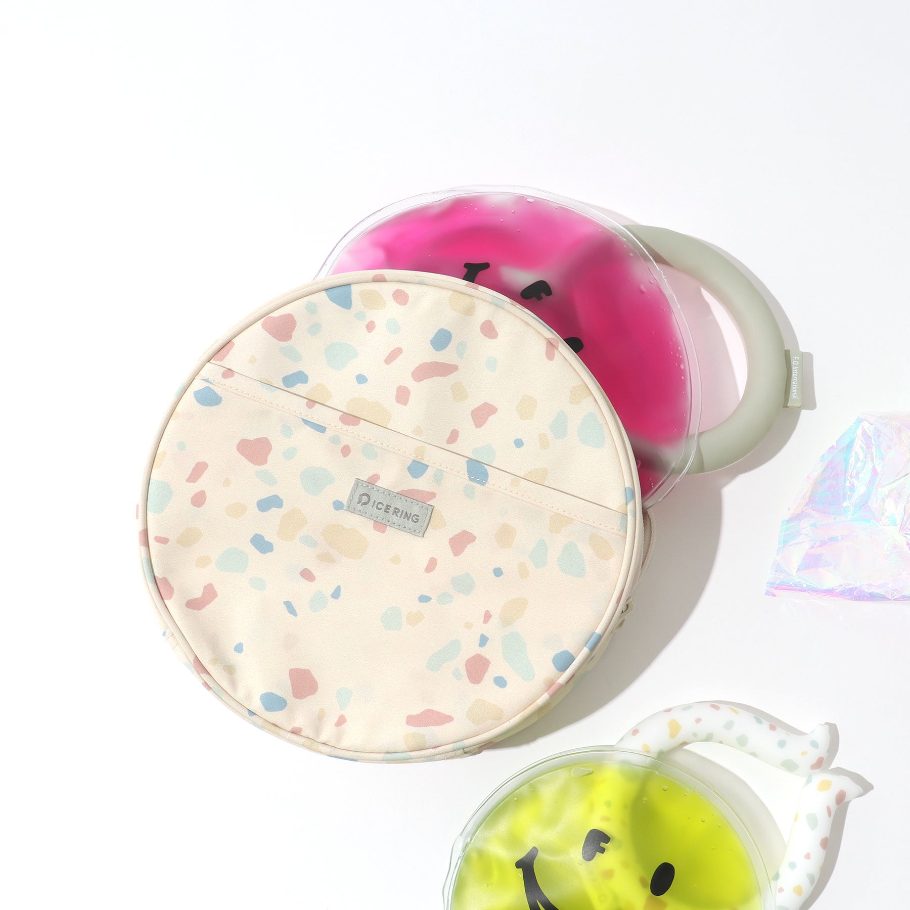 円盤式アイスリング用保冷グッズ。お手持ちのアイスリングを型にセットすることで、効率よく冷やすことが可能に。小ぶりサイズのため、オフィスシーンでの使用におすすめ。