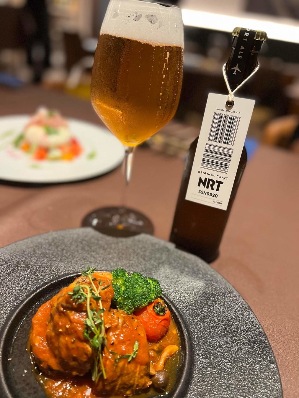 ✈レシピは、成田空港からの「出発」「華やかさ」をイメージし、ホップには白ブドウのような香りが特徴のネルソンソーヴィンを使用。華やかな香りとフルーティーな味わいを演出しました。また、仕上げに千葉県産のオリーブオイルをひと回しし、芳醇なシャンパーニュのように仕上げました。