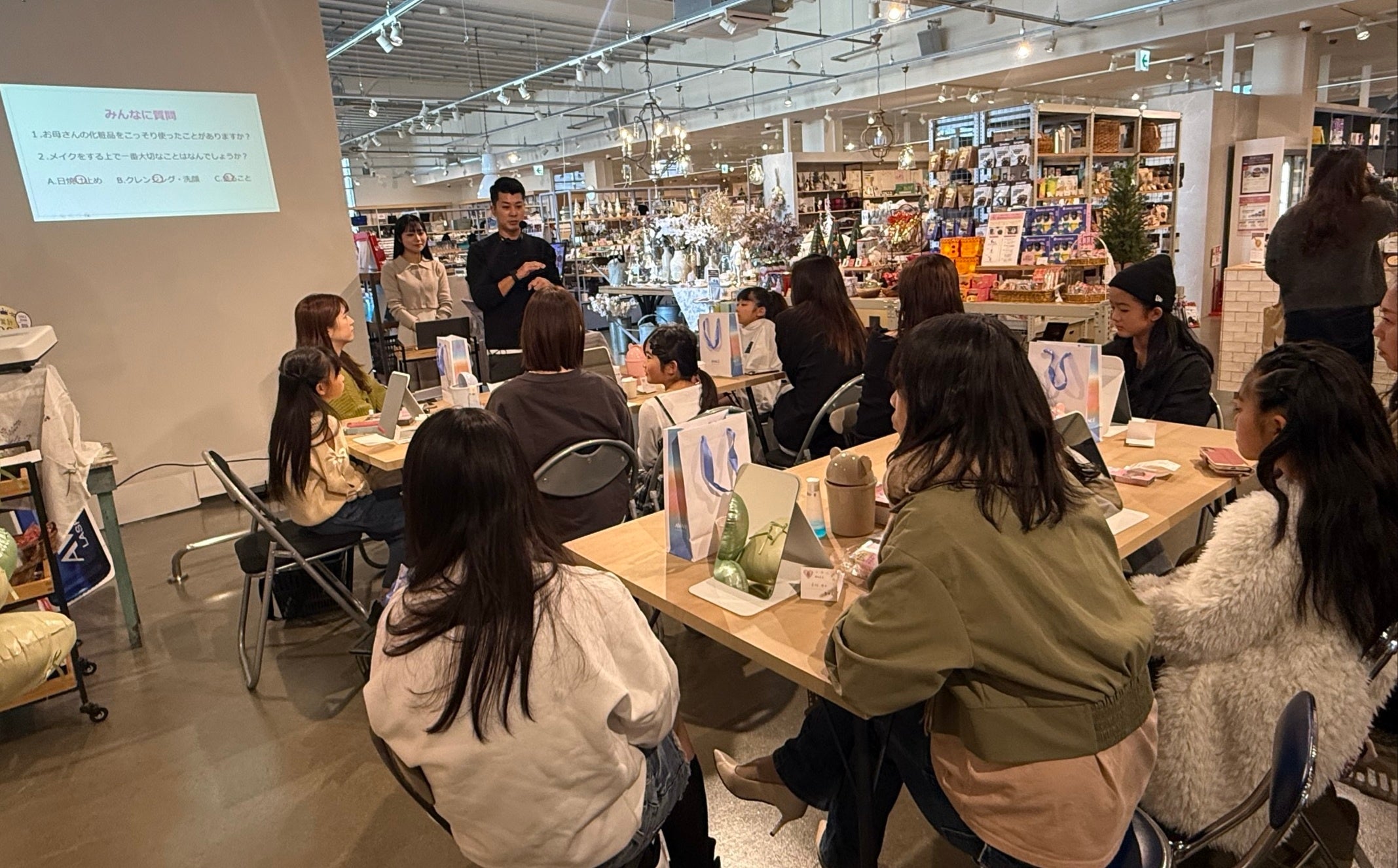 美容の基礎であるUVケアやクレンジングの大切さ、まつ毛ケアなど、単なるメイク体験を超え、”正しい美容の知識を楽しく学べる場”として展開してきました。11月~12月においては、全国で累計109組の親子が参加し、地域パートナーと連携した新しい美容教育の取り組みとして高い評価を得ています。