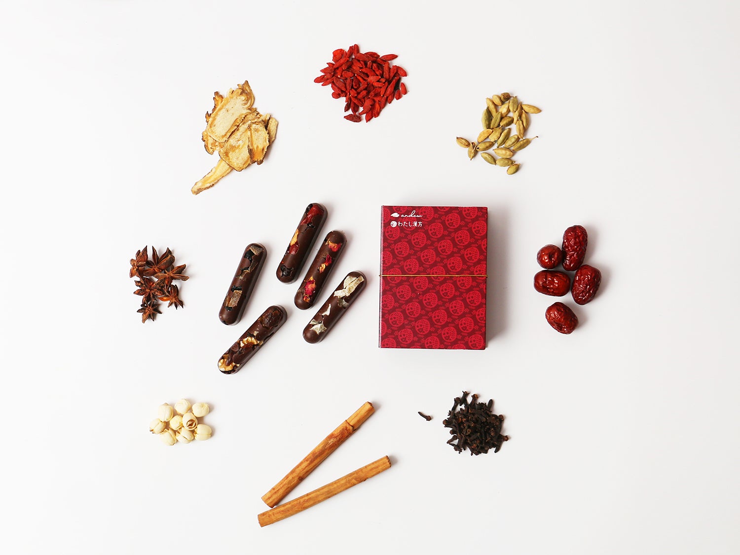 今回わたし漢方様とタイアップでチョコレートを製造させていただきました。私自身、富山大学薬学部に在籍していたときに漢方の勉強もしていました。分子メカニズムがまだまだ未解明なことが多い領域であり、可能性を感じる分野だなと思っております。より漢方を身近に感じていただき、医療を知ってもらうきっかけになればとても嬉しいです。