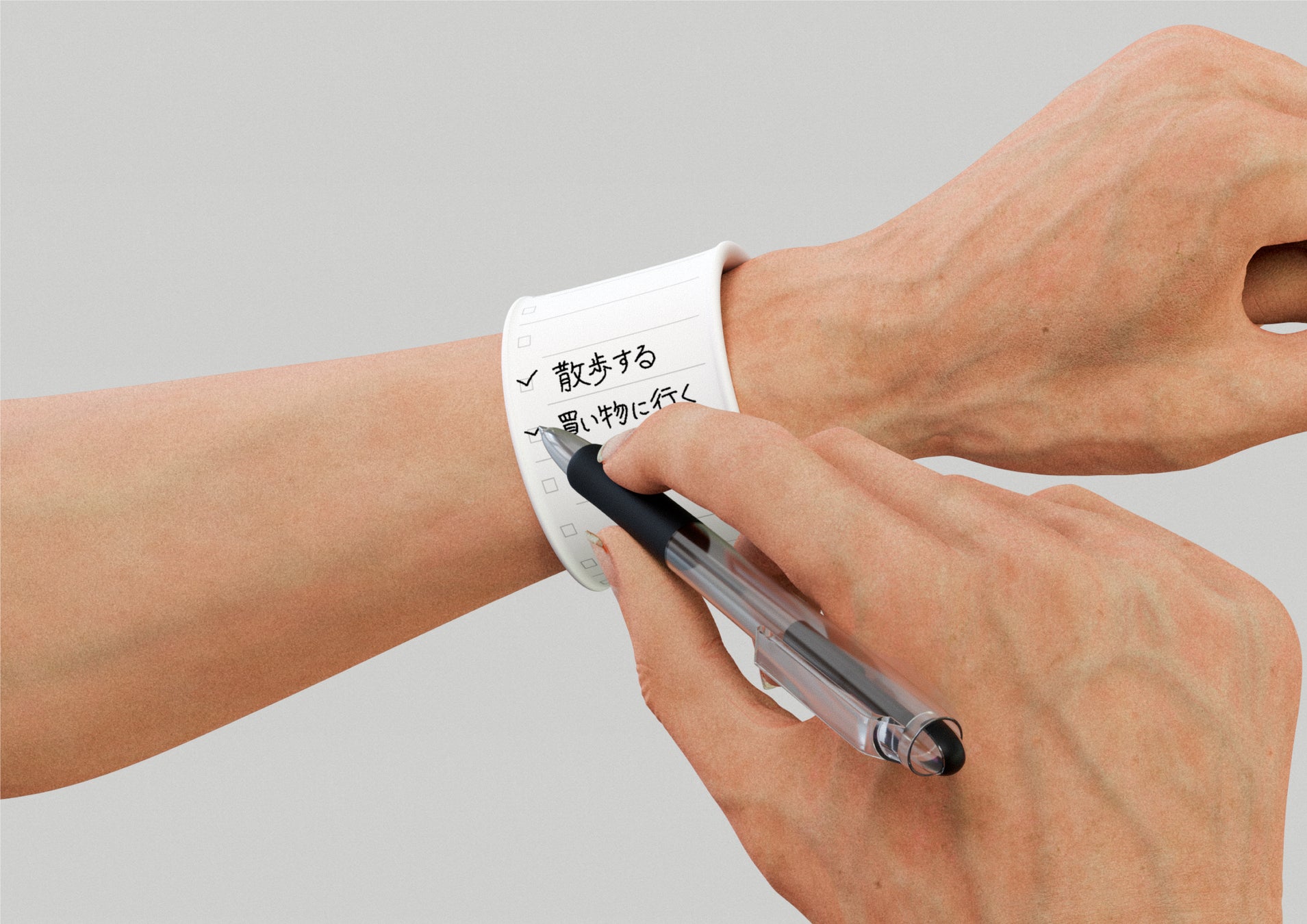 本プロジェクトを通して開発された「wemo®バンドタイプ アクセシブルモデル」は、従来の「wemo® バンドタイプ」の特長である 「常に身につけておけることで、すぐにメモができる」「ふとした瞬間に書いた内容が目に入って思い出せる」 という機能性はそのままに、認知症当事者や介護者の方々の意見をもとに改良を行いました。認知機能に不安を抱える方でも使いやすいデザインになっています。