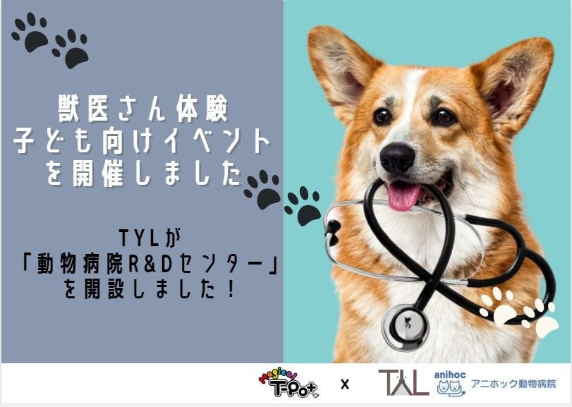 TYLが運営する「ながつたペットクリニックbyアニホック動物病院」にて、2023年8月11日に、また、TYLが運営するグループ動物病院の「アニホック動物病院」と、ケイエム企業株式会社(本社:東京都世田谷区、代表取締役:真鍋 慶行)が『遊びを通じて想像力を豊かに』をコンセプトに運営するみんなの遊び場「屋内ゆうえんち Magical T-Pot」(所在地:東京都調布市入間町 以下Magical T-Pot)で、2023年8月24日に、「お子様向け獣医さん体験イベント」をそれぞれ開催しました。