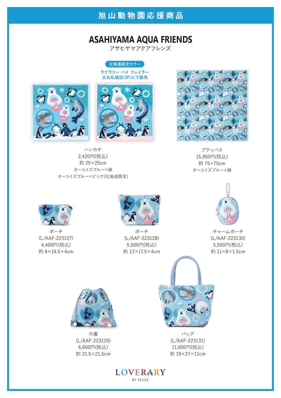 ラブラリー バイ フェイラーショップ大丸札幌店(3F)では、旭山動物園応援商品全アイテムの先行販売を行い、旭山動物園応援商品 北海道限定ハンカチも販売いたします。