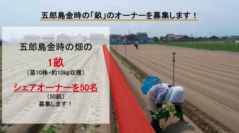 紅はるかのような蜜たっぷりの焼き芋が主流な中、ブレることなく昔ながらのコッボコボな食感を守る五郎島金時を一緒に見守り、育てるシェアオーナーを募集します。