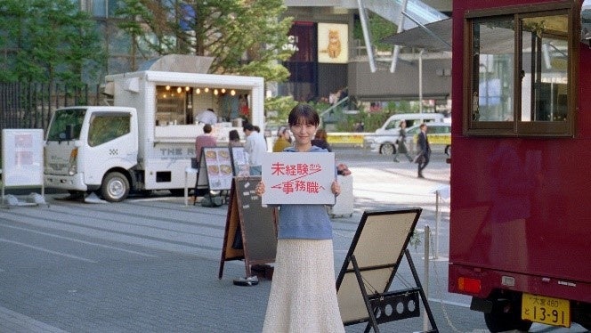 <シーン③:『キャリアウィンク』新CM:未経験から事務職へ「広場でウィンク」篇>