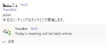 すると、Botより翻訳結果が戻ってきます。