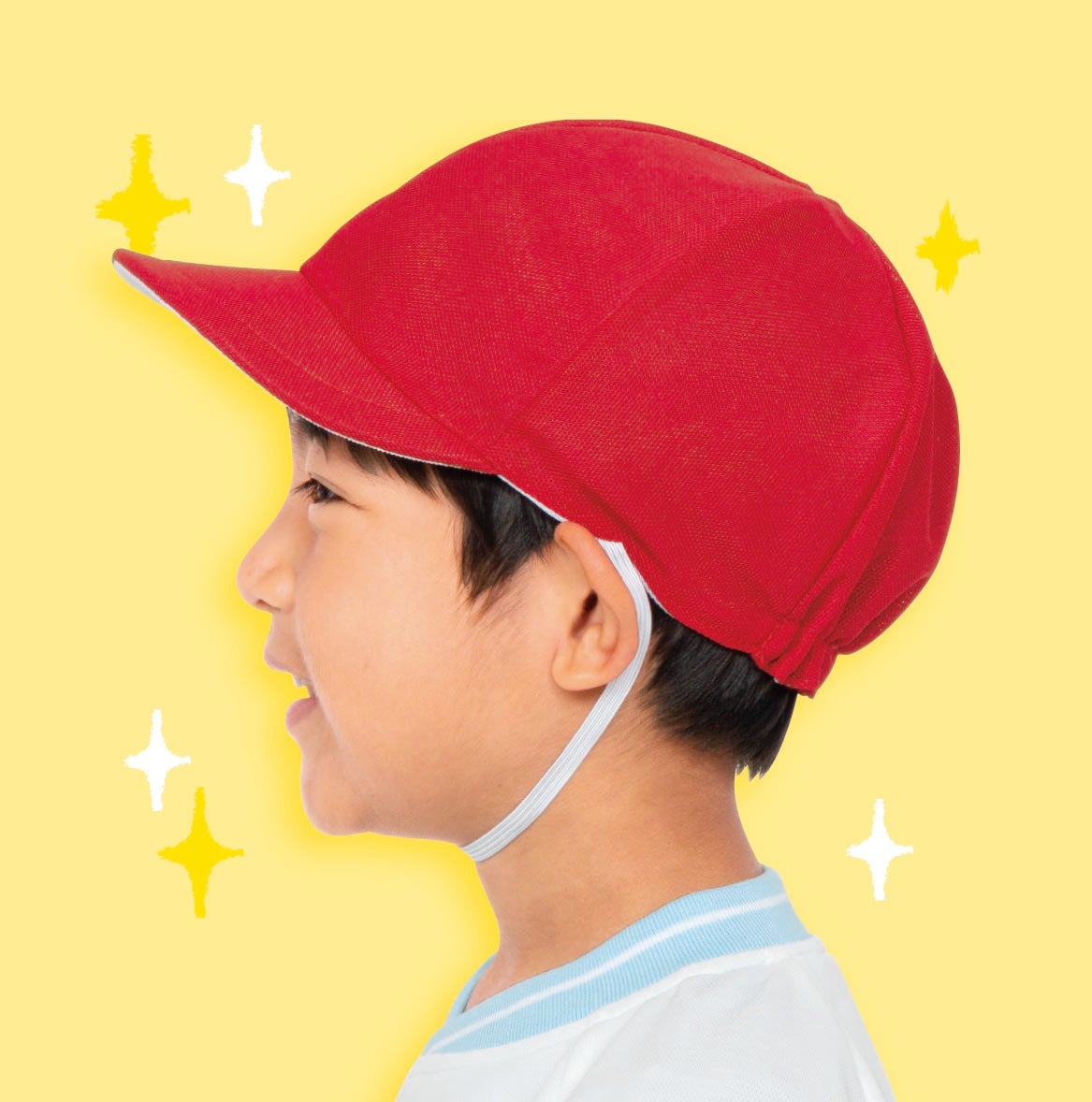色帽子は、ツバで紫外線から子どもを守ることの他、様々な役割があります。しかし、長いツバが、子どもの視野を狭めたり、顔を隠してしまったりして、保育者が子どもの表情を見守る妨げになっていました。「安全」のための形状が、「安全」を脅かす原因にもなっていたことが、開発のきっかけとなりました。