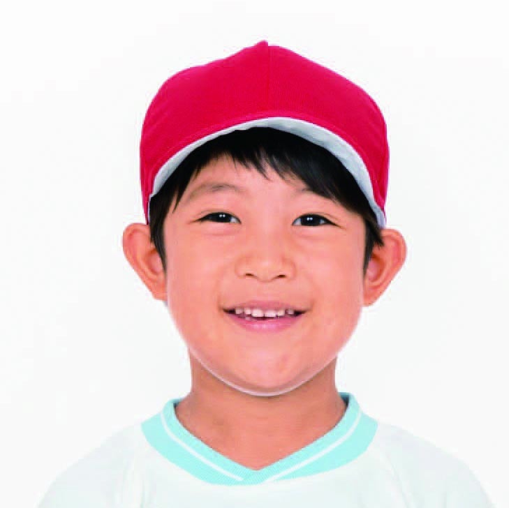 幼稚園や保育園等の子どもが屋外で過ごす時にかぶる「フィットいろぼうし」。長いツバがキュッと上がるのが特長です。紫外線を含む強い陽射しから子どもを守ると同時に、「子どもの顔がしっかり見える」という“もう一つの安全”を加えました。