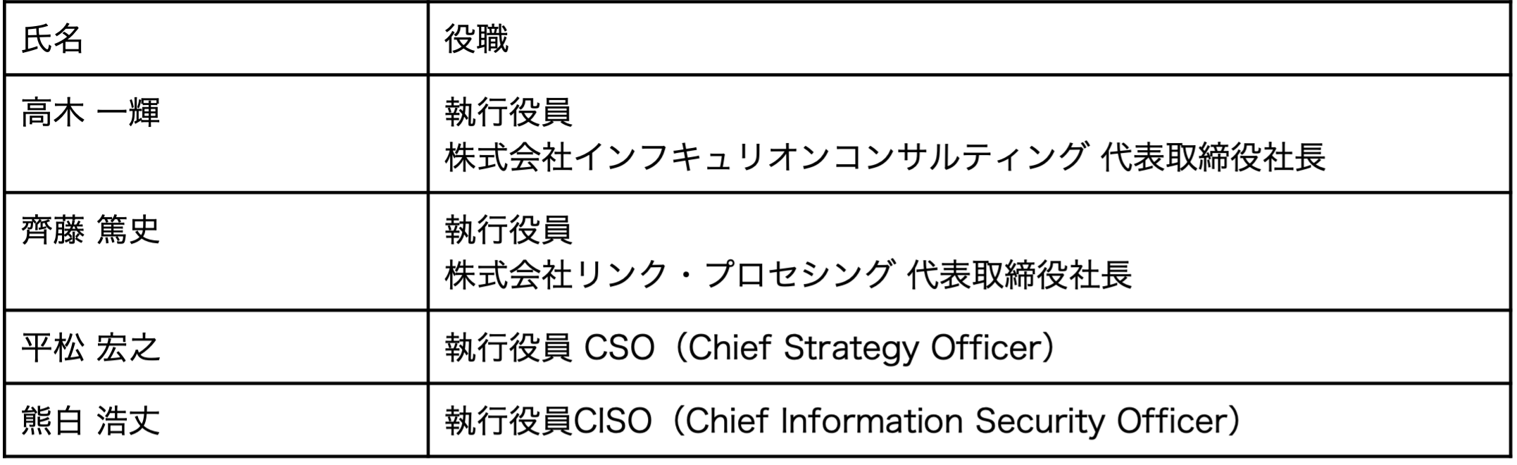 インフキュリオン 新役員体制のお知らせ