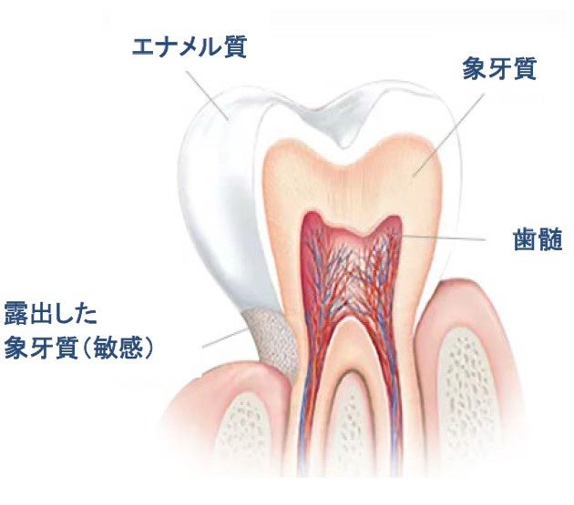 1.歯のエナメル質がすり減るなどの原因により、象牙質が露出する