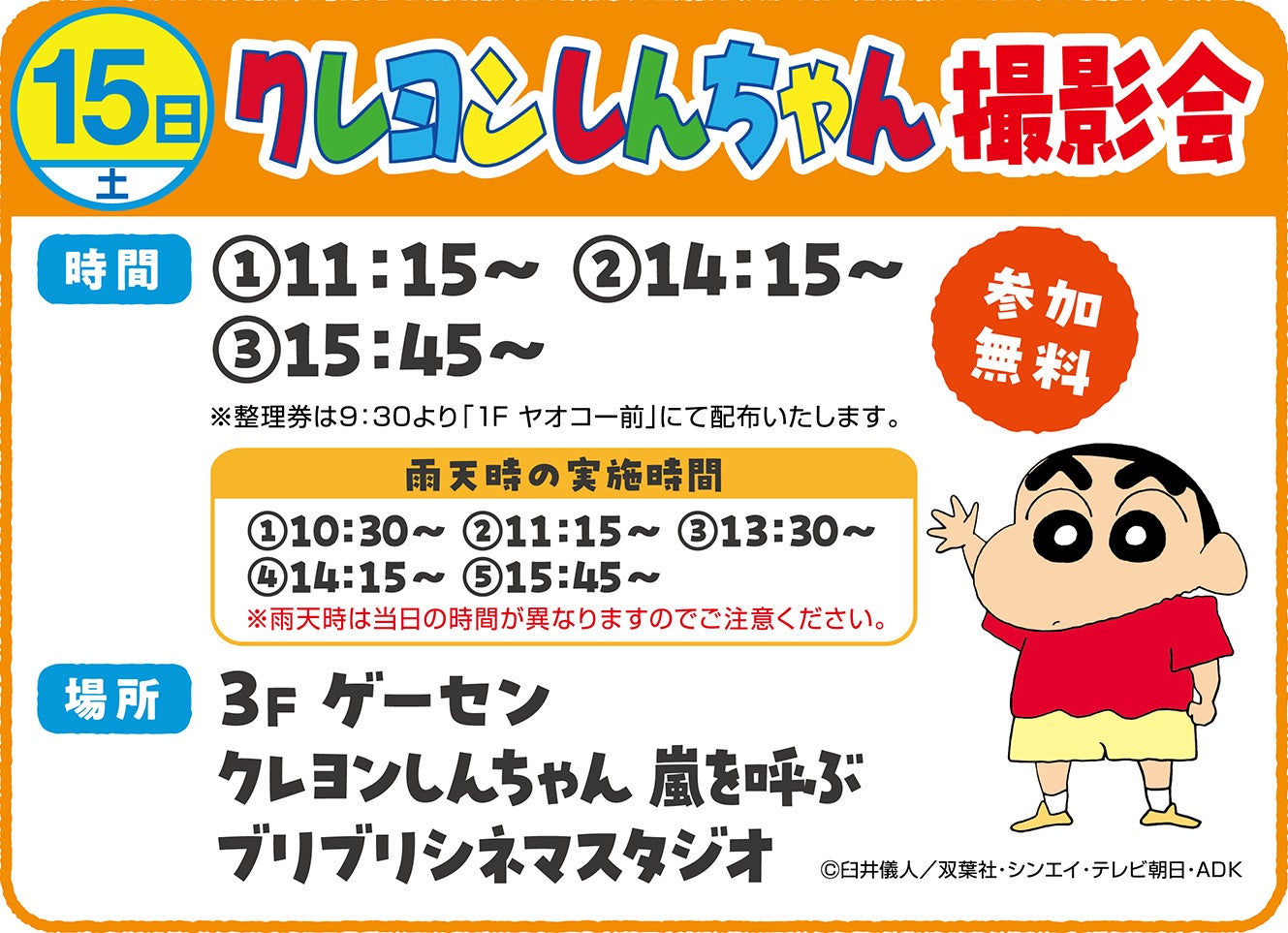 「クレヨンしんちゃん撮影会」 ①11:15~、②14:15~、③15:45~