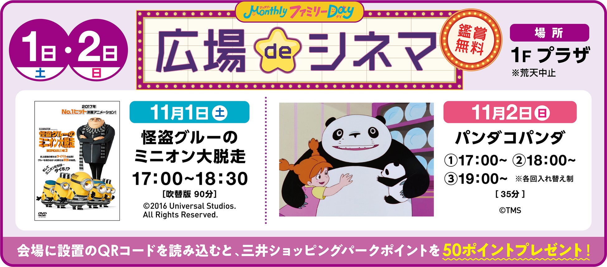 また、おトクなスペシャルセールと共に、屋外で人気アニメ作品を鑑賞できる「広場deシネマ」や「クレヨンしんちゃんショー&クレヨンしんちゃん撮影会」、4,000円分のお買物券が1セット3,000円で購入できる「お買物券販売会」など、お子様から大人の方までお楽しみいただけるイベントを多数実施!