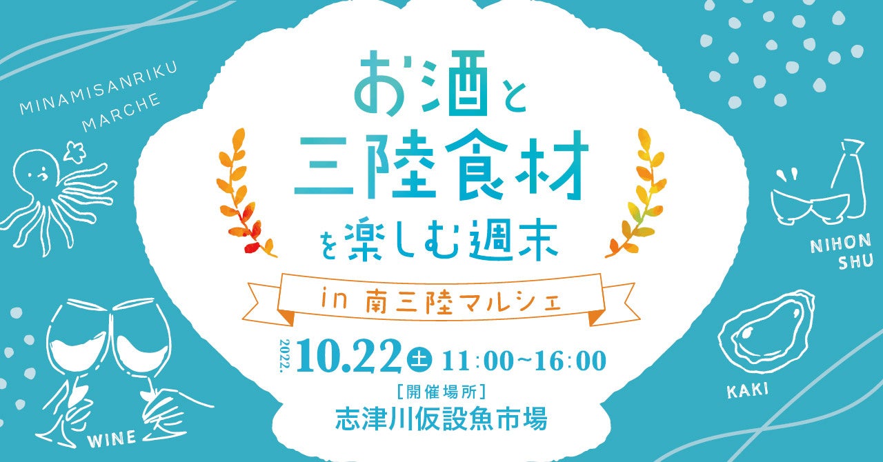 南三陸の海を臨む志津川仮設魚市場にて、10月22日(土)、お酒と三陸食材を中心にしたマルシェイベント『第2回南三陸マルシェ』を開催します。