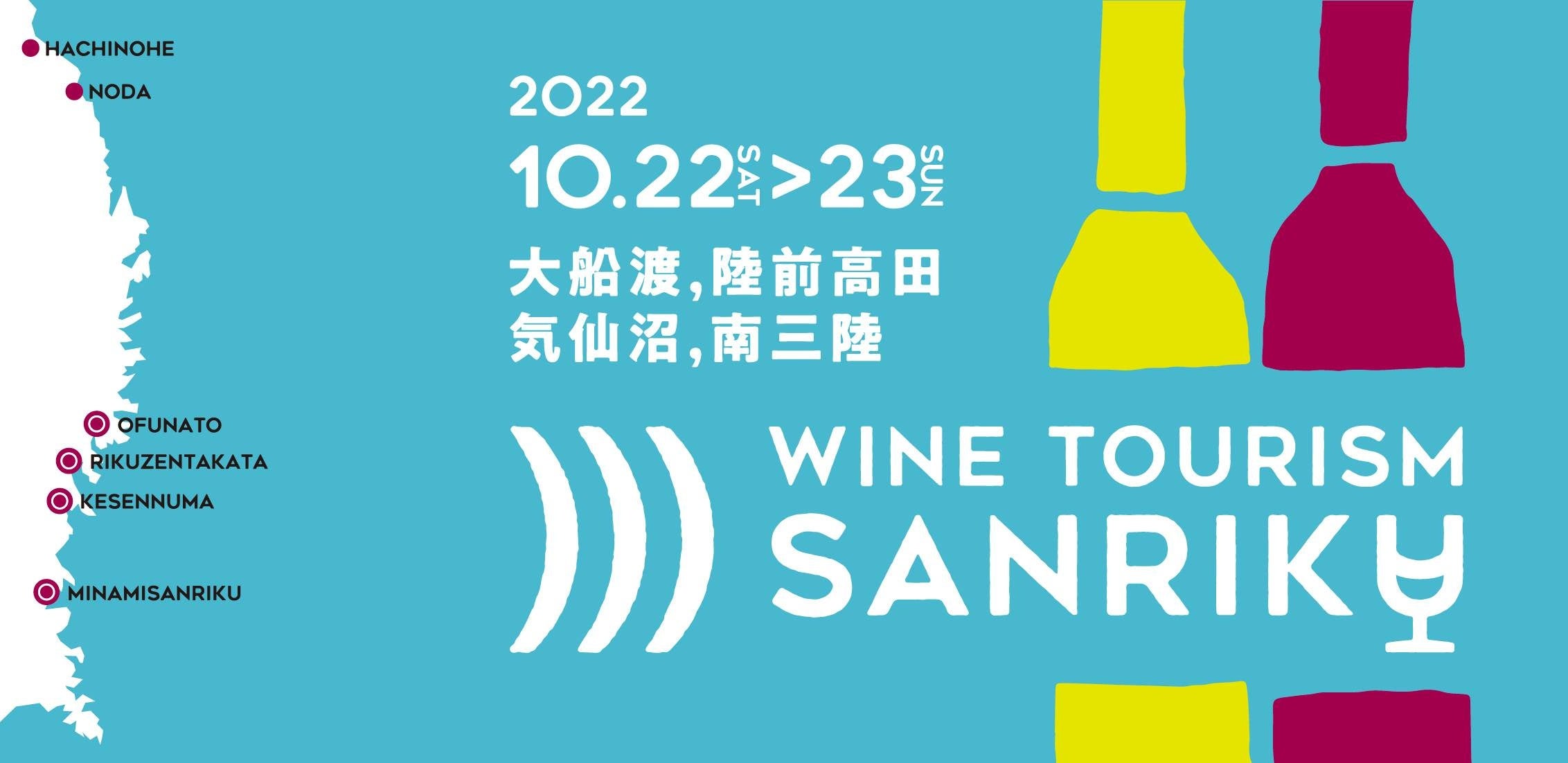 「三陸のワインと食のすばらしさを、“さんりくから全国へ、世界へ”。」をスローガンに、岩手県の大船渡市、陸前高田市、宮城県の気仙沼市、南三陸町の4市町をシャトルバスで結んで周遊し、三陸のワインと食を味わえる『ワインツーリズムさんりく2022』を、2022年10月22日(土)~23日(日)に初開催します!